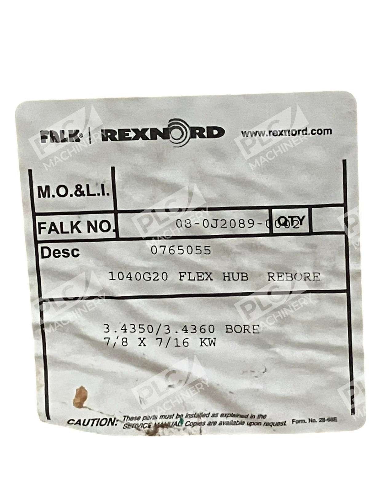 Falk Rexnord 0765055 08-0J2089 8J2089 3,4350 Flex Hub 1040G20 1040G