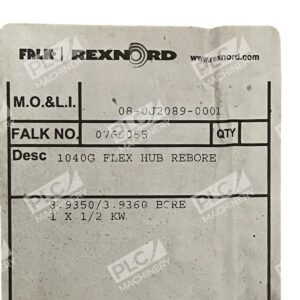 The Falk Rexnord 0765055 08-0J2089 8J2089 3,9350 3.9350/3.936 Bore Flex Hub 1040G is a high-quality mechanical power transmission component manufactured by the trusted brand FALK. This model, with the reference SKU 1055800, is part of the 1040G20 model line and offers reliable performance in industrial automation and motion control applications. Designed with precision and durability in mind, this flex hub is a key element in ensuring smooth and efficient power transmission within machinery and equipment.