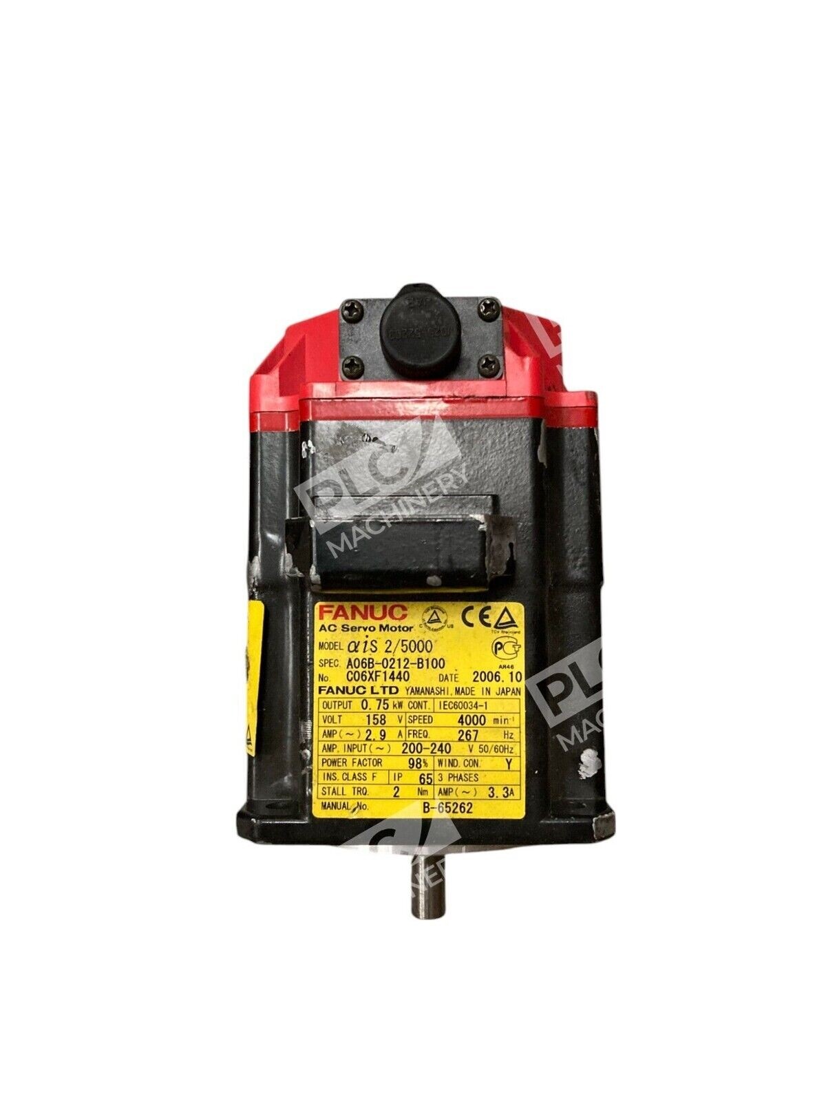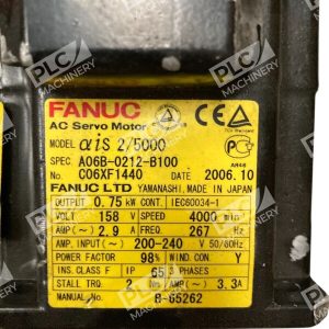The product is a Fanuc AIS2/5000 A1000I Straight Shaft AC Servo Motor with the model number A06B-0212-B100. It is designed for industrial automation and motion control applications.