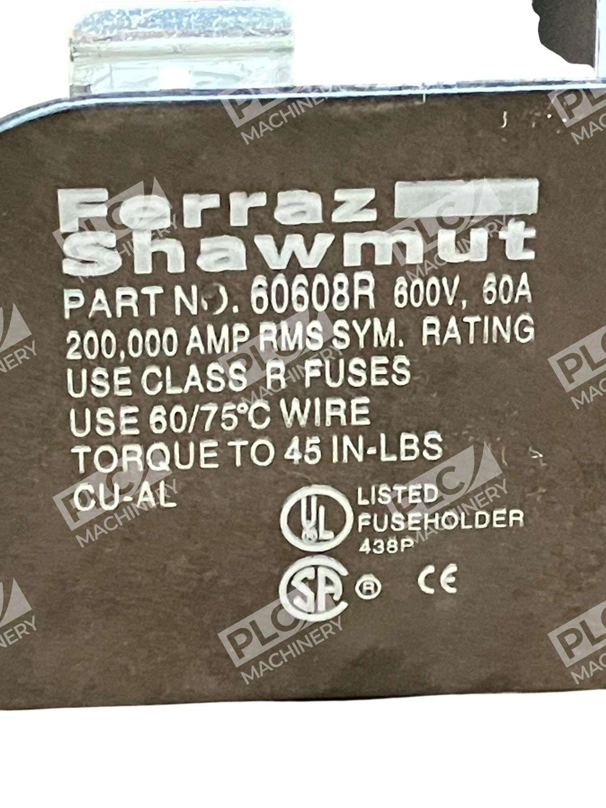 Ferraz Shawmut 60608R Fuse Block 3-Pole 60A 600V AC/DC Class R Industrial