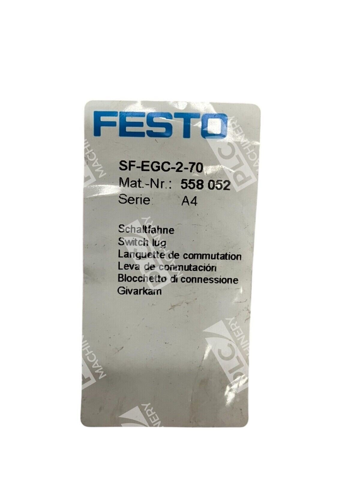 Incorporating the Festo 558052 Series A4 Switch Lug SF-EGC-2-70 into your automation setup ensures reliable and precise position sensing, contributing to the overall efficiency and accuracy of your system.
