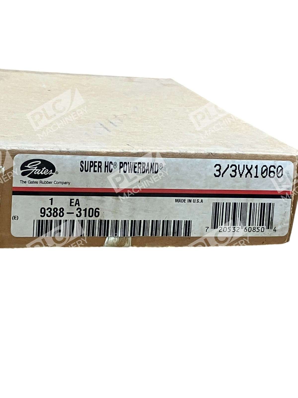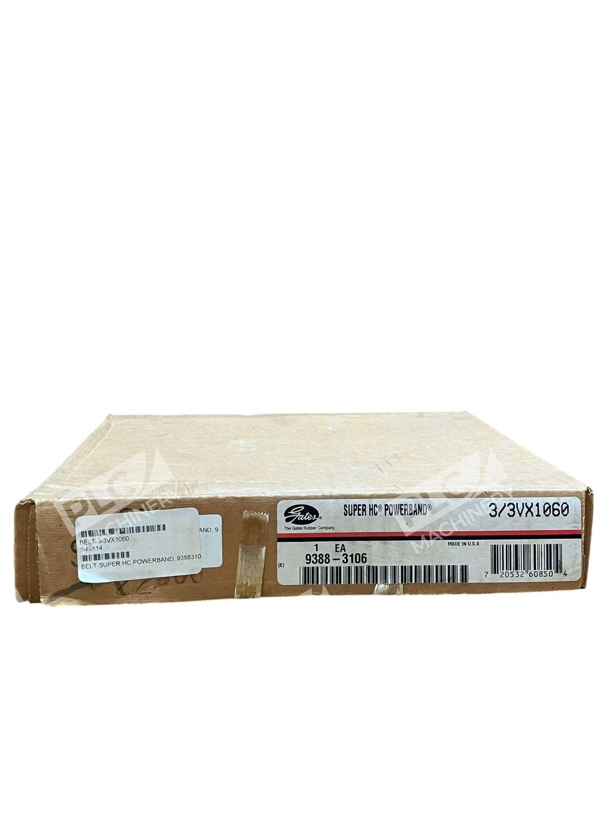 The Gates 3/3VX1060 Super HC PowerBand Heavy-Duty V-Belt 9388-3106 is a high-quality, durable power transmission belt designed for industrial automation and motion control systems. Made by the trusted brand Gates, this unit is a single member with a model number of 9388-3106. It is specifically designed for heavy-duty applications, ensuring reliable and efficient power transmission for various industrial machinery and equipment. With its sturdy construction and precise engineering, this V-belt is a crucial component for maintaining the smooth operation of machinery in a range of industries.
