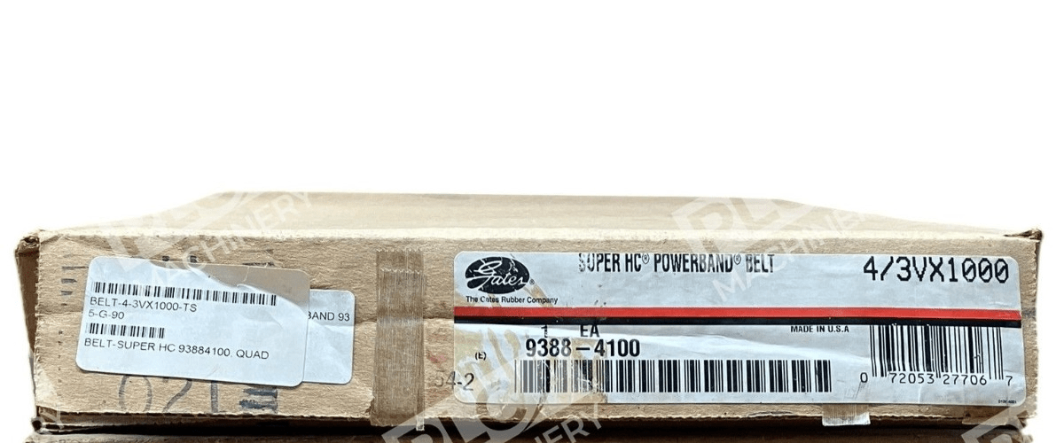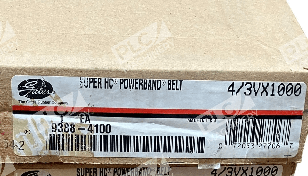 The Gates 4/3VX1000 Super HC PowerBand Vextra Belt 9388-4100 is a high-quality V-belt designed for mechanical power transmission. Produced by Gates, a trusted brand in the industry, this belt is sold in units of 3. With the Gates 4/3VX1000 Super HC PowerBand Vextra Belt, you can expect reliable and efficient power transmission for your industrial automation and motion control systems. This product is a valuable addition to any business or industrial setting that requires precise and consistent power transmission.