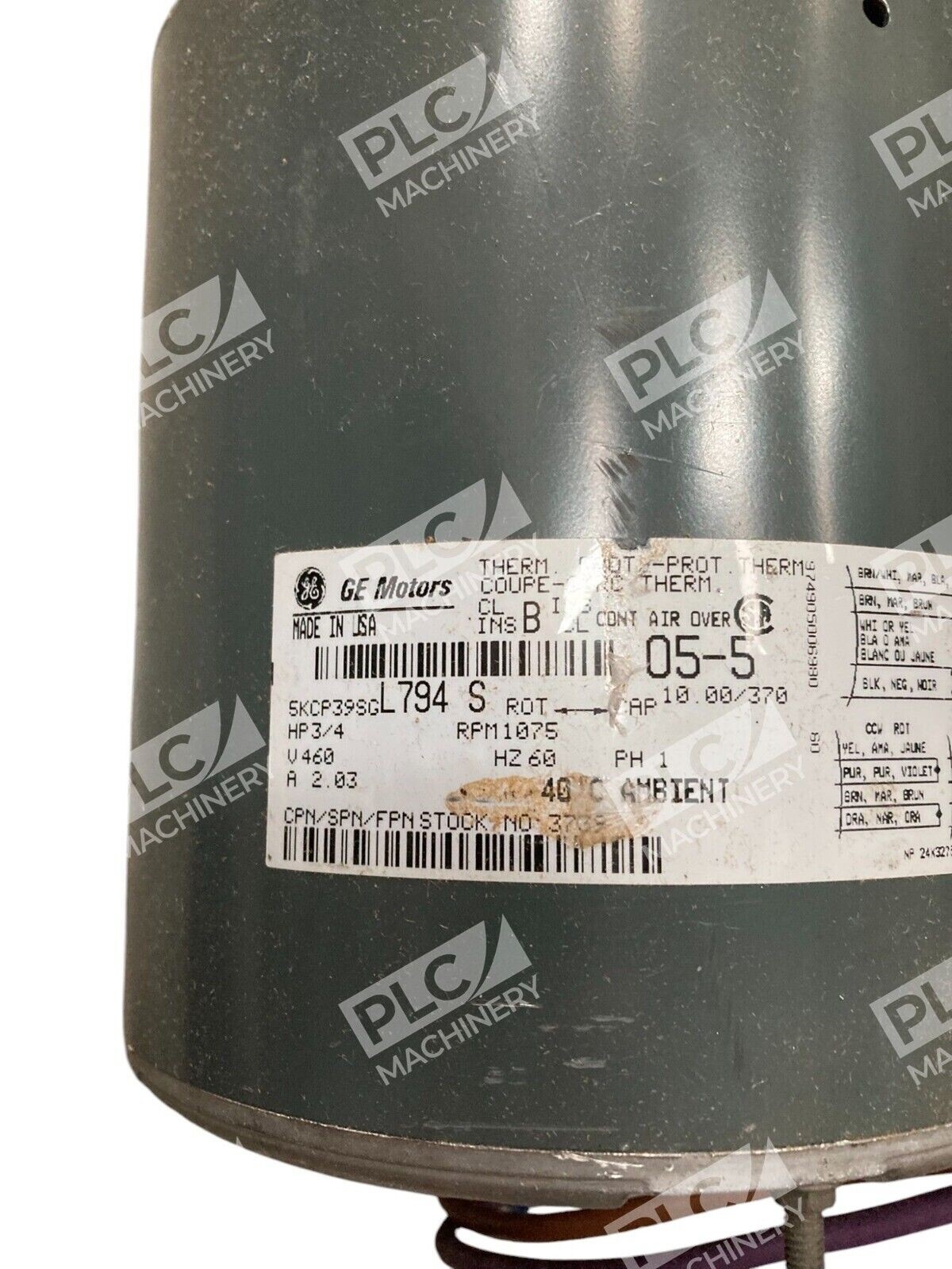 The product is a GE 3/4HP 2.03A 1075RPM AC Motor with the model number 5KCP39SGL794S. It is designed for industrial applications and falls under the category of Definite Purpose Motors, Electric Motors, and Industrial Automation & Motion Controls. It is a reliable motor manufactured by GE.