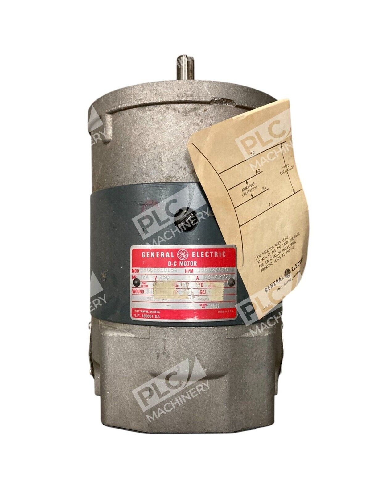 This is a General Electric GE 1/4HP 250V 1.3A/.222F DC Motor with the model number 5BCC56ED154.