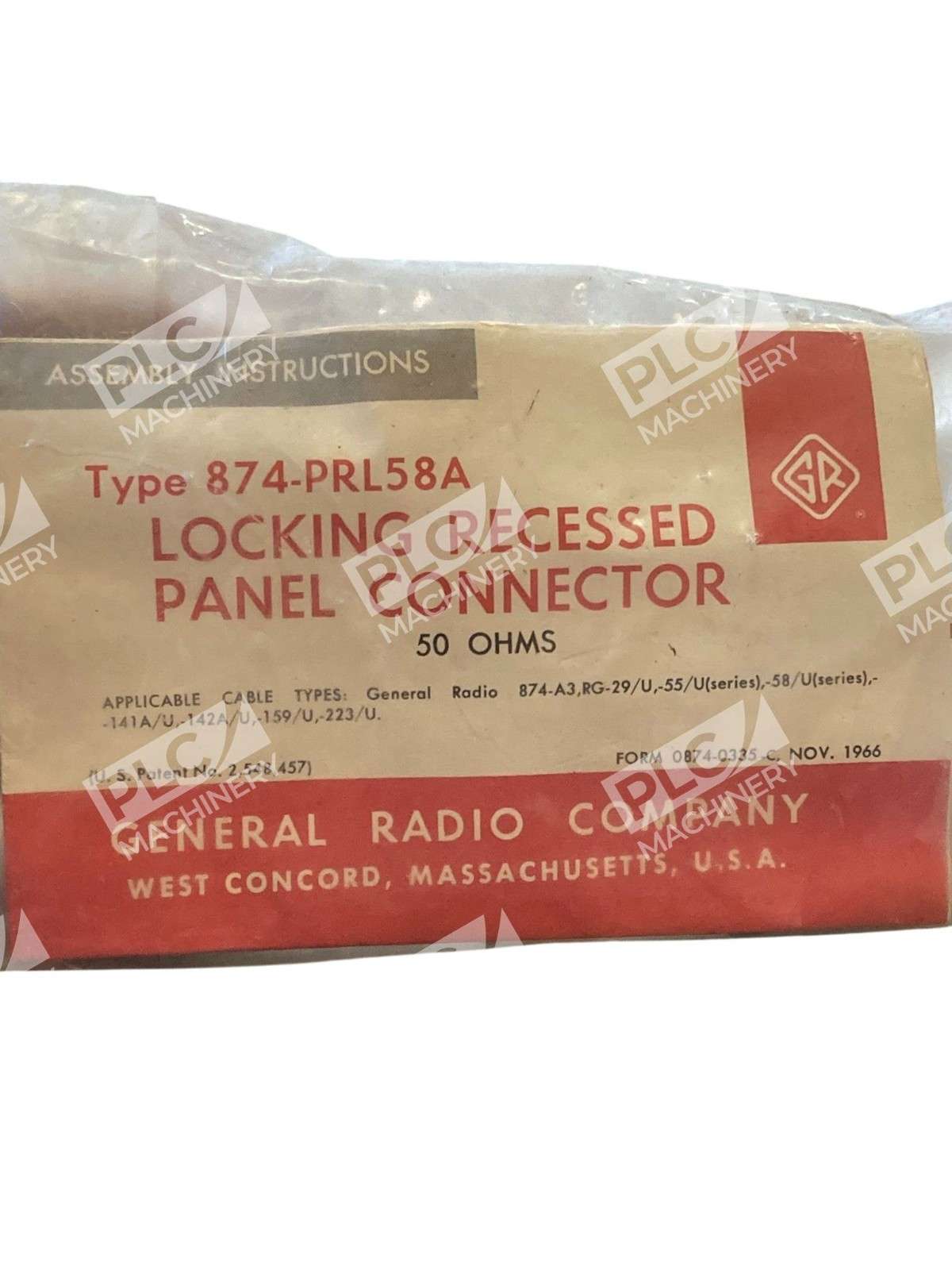 General Radio 874-PRL58A 50? Locking Recessed Panel Connector The General Radio 874-PRL58A is a 50-ohm locking recessed panel connector designed for seamless integration into equipment panels. Its recessed design ensures a clean and space-efficient i