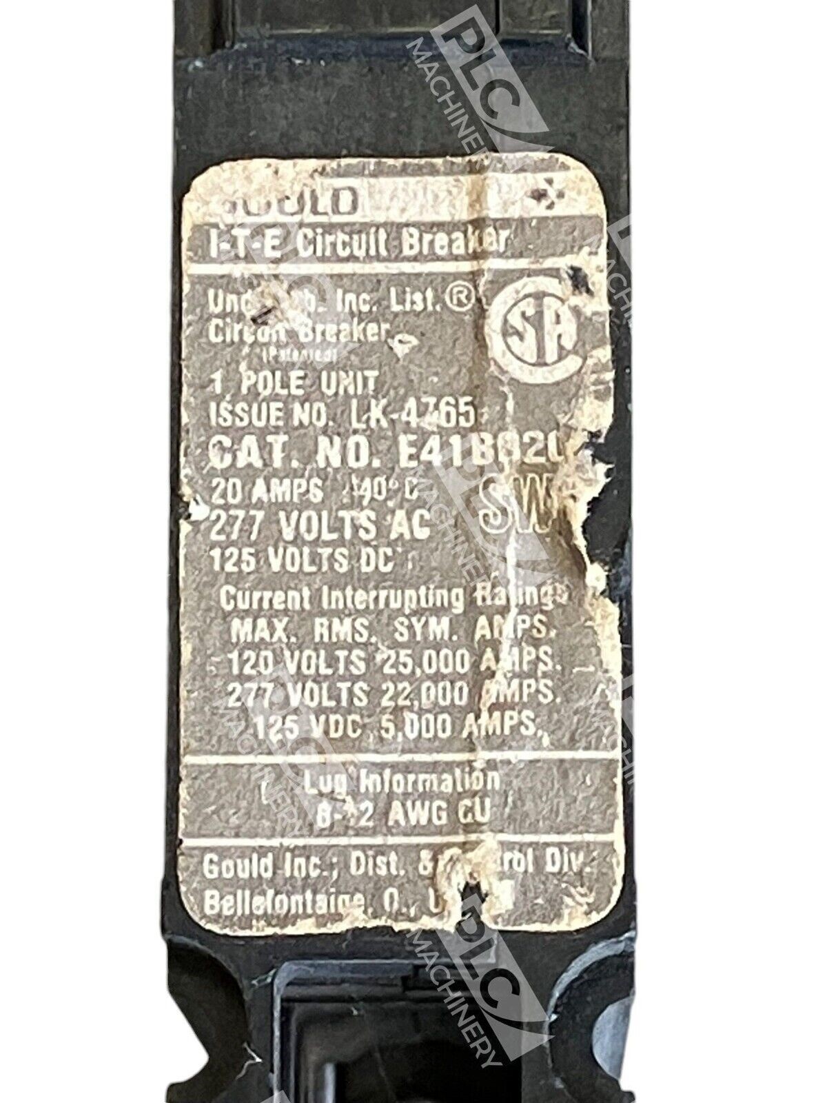 This Gould I-T-E Circuit Breaker 20A E41B020 is a reliable and efficient electrical equipment that is perfect for any business and industrial setting. It is manufactured by Siemens and has a single pole with an amperage rating of 20 and voltage rating of 277/120 VAC 125/250 VDC. This circuit breaker is designed to provide maximum safety and protection for your electrical system without compromising on performance. It is compatible with a wide range of electrical equipment and supplies, making it a versatile and valuable addition to any toolbox.