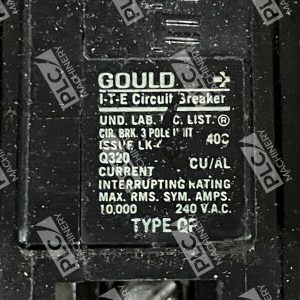This is a Gould ITE Type QP Miniature Circuit Breaker with a maximum amperage of 20A. It is a 3-pole breaker designed for a voltage of 240VAC. The breaker is of the plug-in/on mounting style and is manufactured in Mexico. The specific model is Q320.