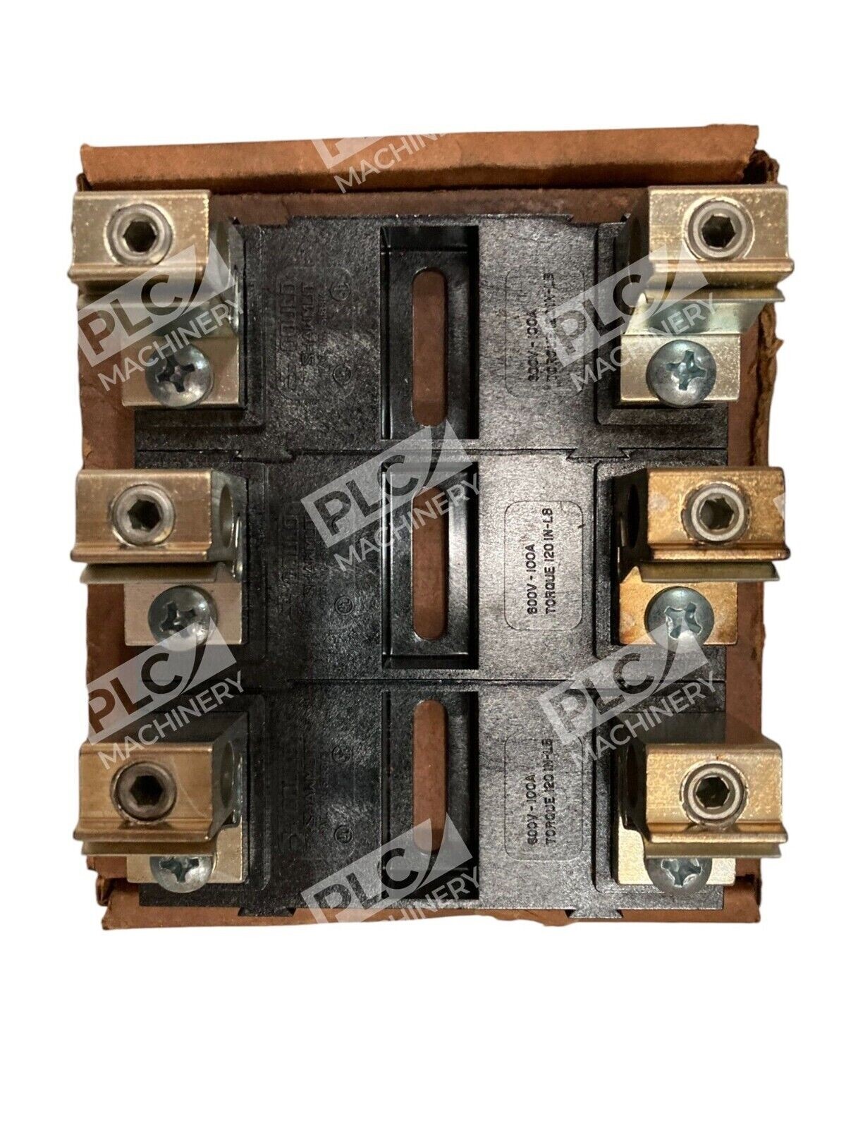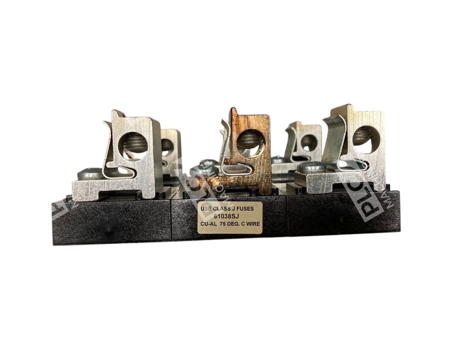 The product is a Gould Shawmut 100A 600V Fuse Block with the brand FERRAZ SHAWMUT. It is designed for electrical equipment and supplies in the business and industrial sector. The model number is 61038SJ.