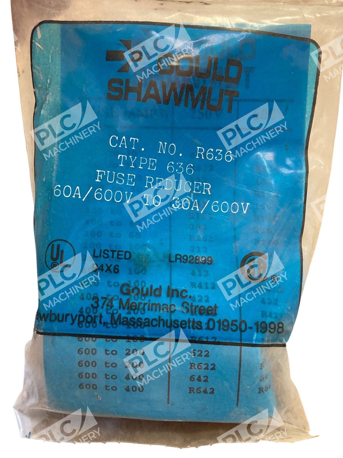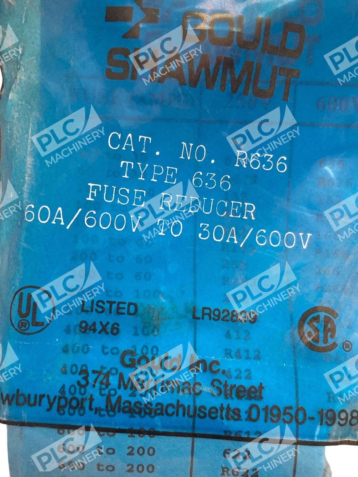 Gould Shawmut R636 Type 636 Fuse Reducer 600VGould Shawmut R636 Type 636 Fuse Reducer 600V