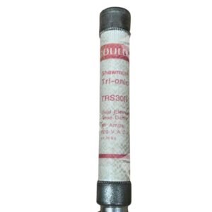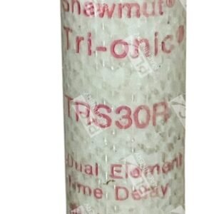 The Gould Shawmut Tri-Onic TRS30R is a 30-amp, 600-volt AC, time-delay fuse designed for reliable overcurrent protection in various electrical applications. Its time-delay characteristic allows it to handle temporary inrush currents without nuisance tripping, making it ideal for motor and transformer circuits.
