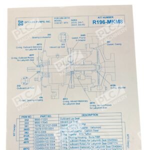 The Goulds Pumps Inc Repair Kit R196-MKM8 is a comprehensive maintenance solution designed for the 3196 MT pump series, specifically accommodating sizes such as 2×3-8, 3×4-8, 3×4-8G, and 3×4-7. This kit ensures optimal performance and longevity of your pump system by providing essential replacement components.