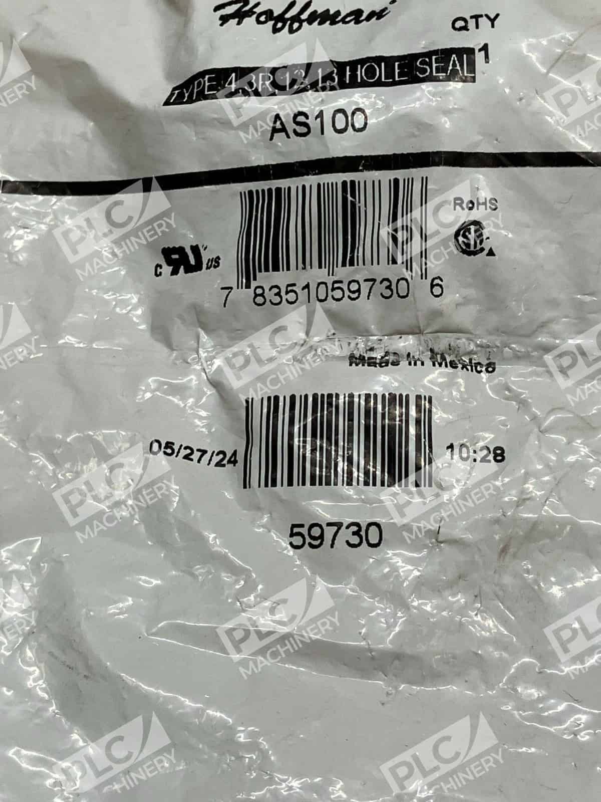 The Hoffman AS100 Type 4, 3R, 12, 13 Hole Seal 59730 is a high-quality sealing product manufactured by INDUSTRIAL MRO in the United States. This seal is designed to provide a secure and reliable closure for various industrial applications, ensuring that materials remain intact and protected. With multiple hole options available, this seal can be customized to fit specific needs and requirements, making it a versatile and essential component for any business or industrial setting.