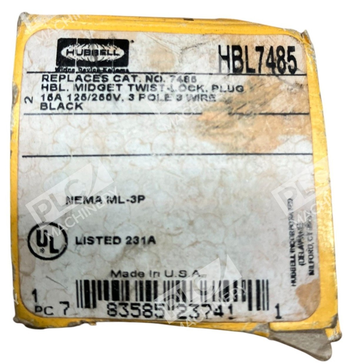 Hubbell 15A 125/250V 3 Pole 3 Wire Midget Twist-Lock Plug HBL7485
