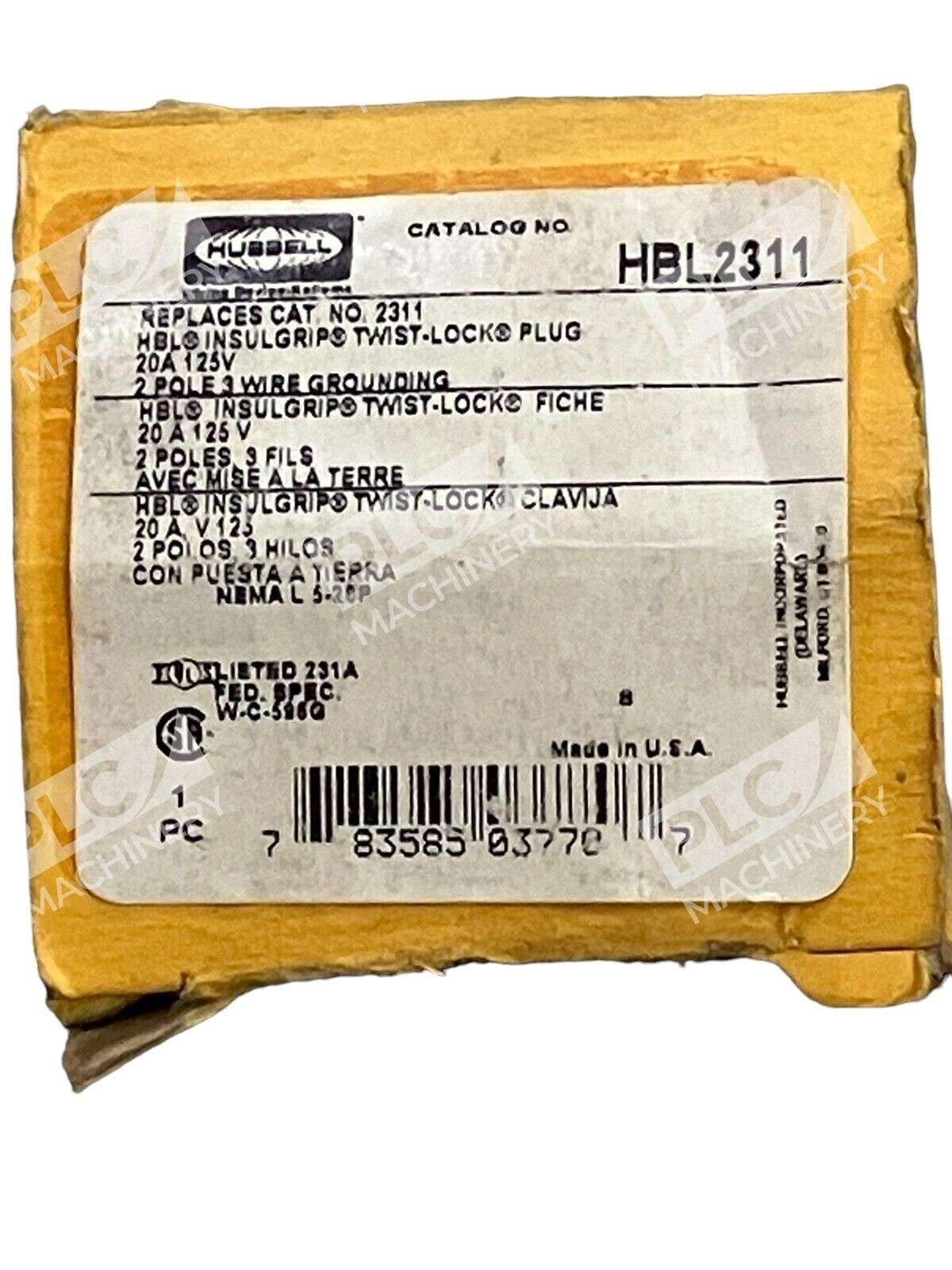 Hubbell HBL2311 Insulgrip Twist-Lock Plug 20A 125V 2 Pole 3 Wire (lot of 3)