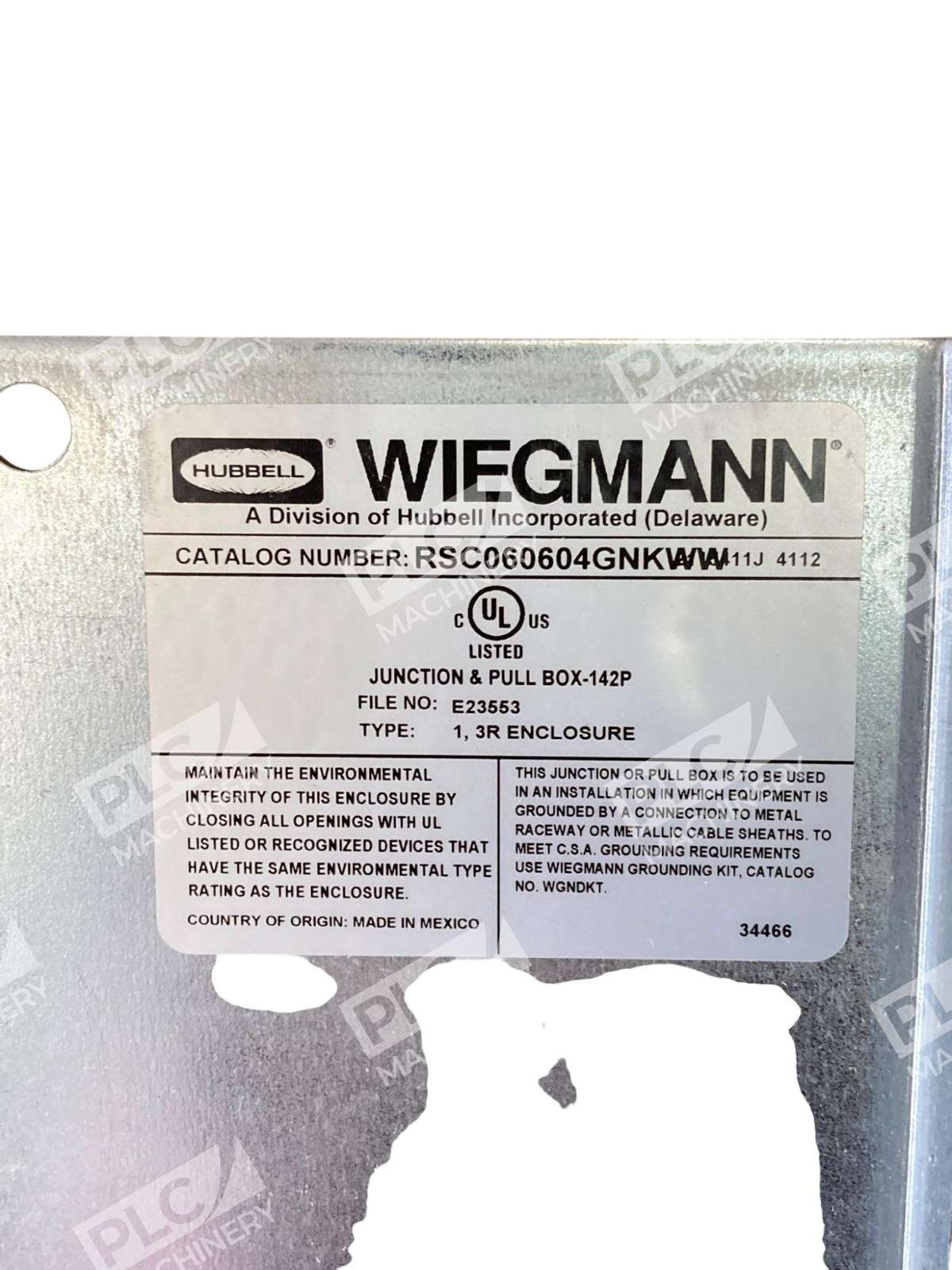 Hubbell Wiegmann RSC060604GNKWW electrical enclosure