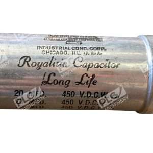 The Industrial Cond. Corp. 45RT4X20 Royalitic 20µF 450VDC Capacitor is a long-lasting electronic component designed for industrial use. With a capacitance rating of 20µF and a maximum operating voltage of 450V, this capacitor provides reliable performance in a variety of electrical systems. As a single unit, it is ideal for demanding applications requiring stable and consistent power storage and delivery. With the trusted Industrial Cond. Corp. brand behind it, this capacitor is a durable and efficient solution for a range of industrial and commercial needs.