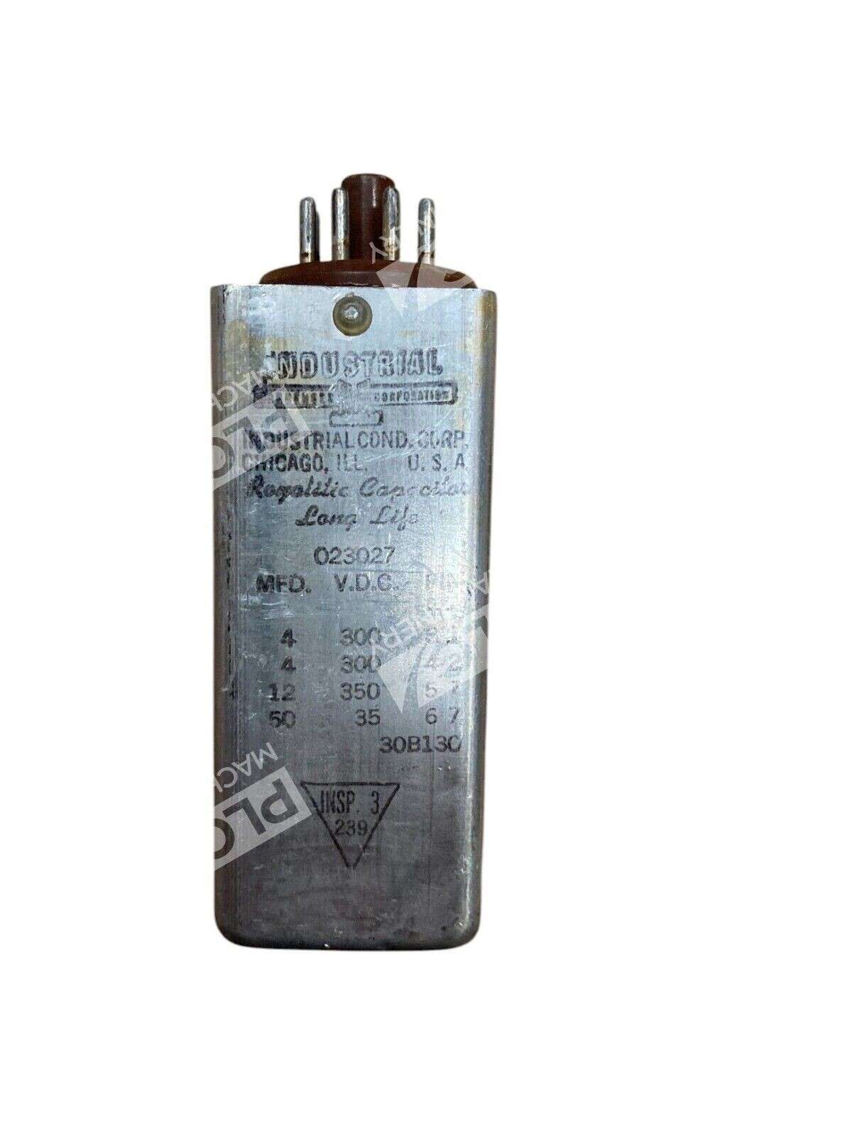 The product is an Industrial Condenser Corp 30B130 Long Life Royalitic Capacitor with 8 pins. It is designed for industrial use and is specifically tailored for industrial condensing applications. This high-quality capacitor offers reliable performance and longevity, making it a dependable choice for industrial settings.