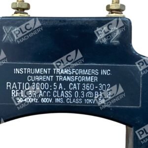 The Instrument Transformers 360-302 is a high-precision current transformer designed to convert a primary current of 3000 amperes to a secondary current of 5 amperes, facilitating accurate measurement and monitoring in electrical systems.