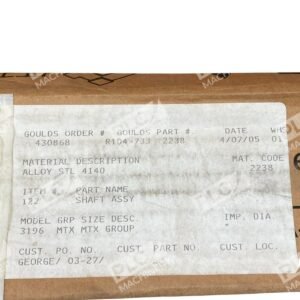 The ITT Goulds 3196MTX 122 Shaft Assembly (Part Number R104-733-2238) is a critical component designed for the Goulds 3196MTX ANSI Process Pump. This shaft assembly is engineered to provide reliable performance in demanding industrial applications.
