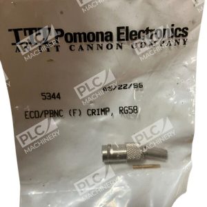 The product is an ITT Pomona Electronics ECO/PBNC (F) connector designed for crimping RG58 cables. Made in the United States, it features a coaxial connector style.
