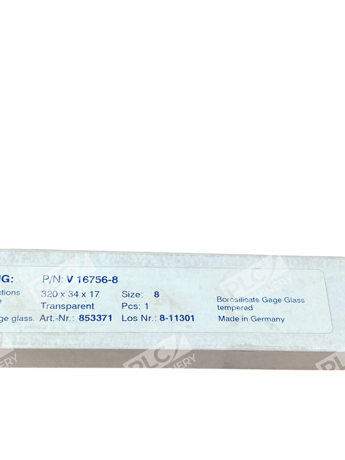 Jerguson Gage & Valve 320X34X17 853371 Borosilicate Gage Glass V16756-8
