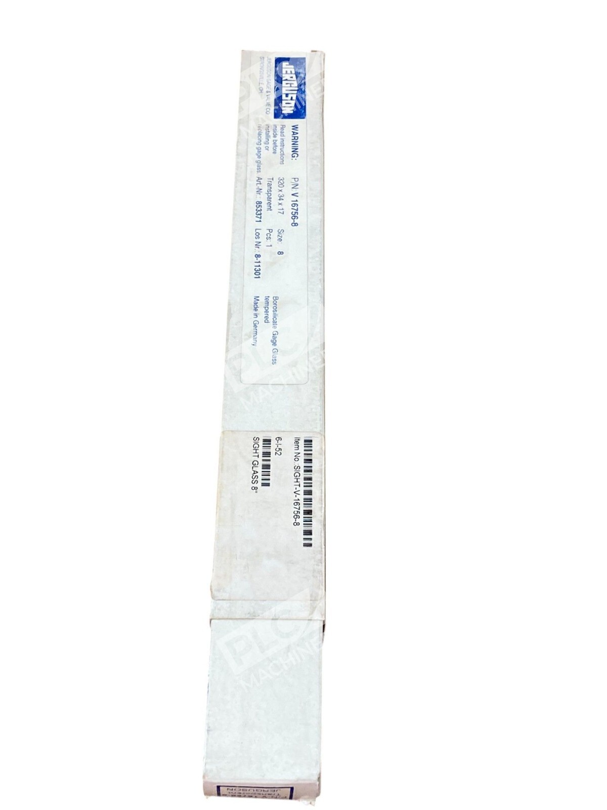 The Jerguson Gage & Valve 320X34X17 853371 Borosilicate Gage Glass V16756-8 is a high-quality level gauge glass made specifically for HVAC and refrigeration systems. Manufactured in Germany by the reputable brand Jerguson, this model offers accurate and reliable readings for monitoring fluid levels. With its durable borosilicate construction and precise measurement capabilities, this gage glass is essential for maintaining optimal performance in industrial and commercial settings.