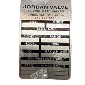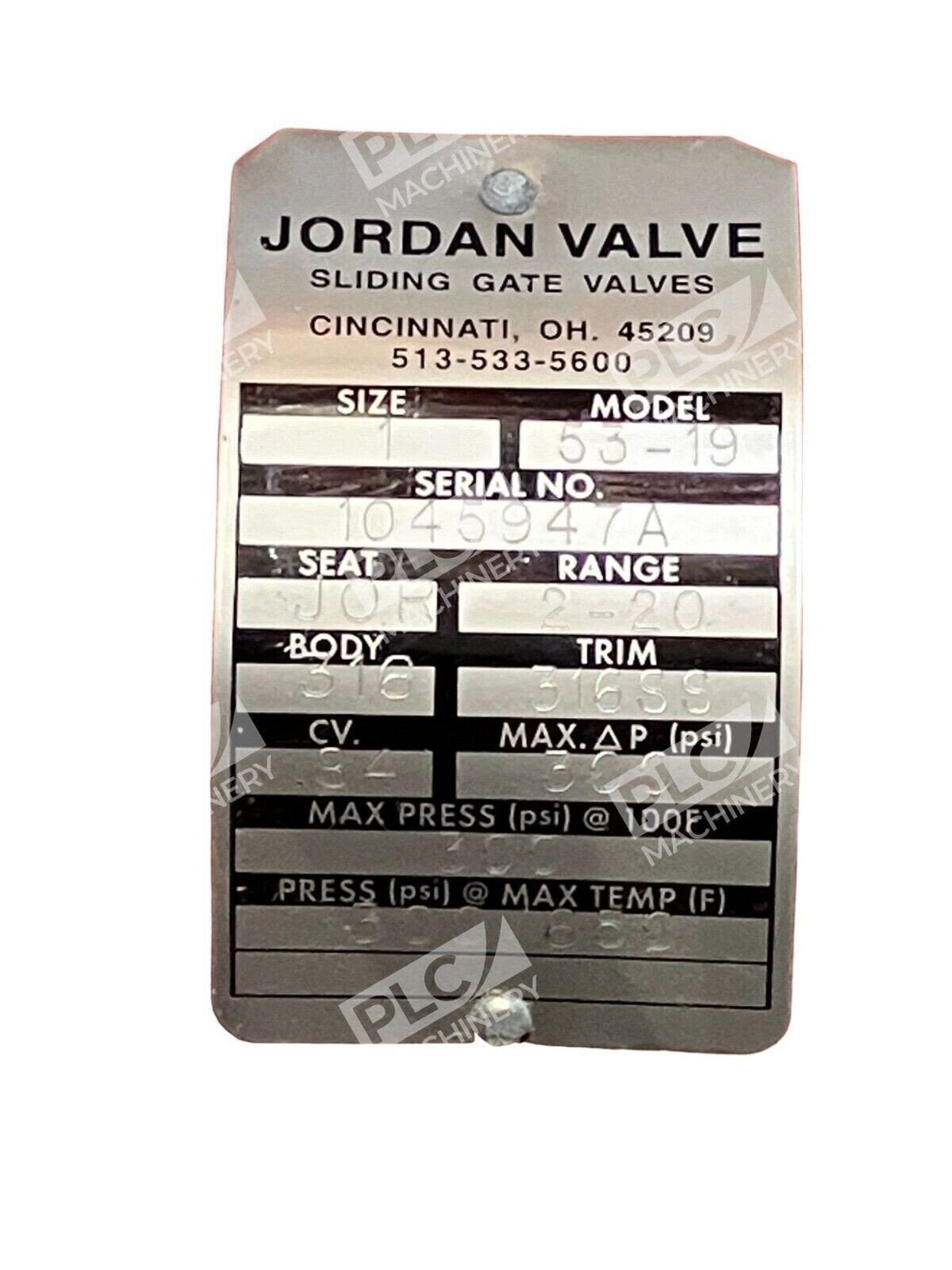Jordan Valve 53-19 Sliding Gate Valve – 1″ Size, 300 PSI