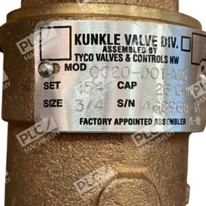The Kunkle Valve Tyco 154 3/4″ Safety Valve, model 0020-D01-MG, is engineered to provide reliable overpressure protection in various industrial applications. This safety relief valve is designed to open at a predetermined pressure to safeguard equipment and systems from potential damage due to excessive pressure buildup.
