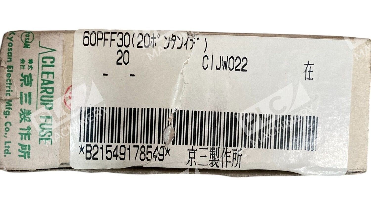 The Kyosan Electric IR10kA 600VAC 015B6U Clearup Fuse 60PFF30U is a high-quality electrical component designed for industrial applications. Manufactured by KYOSAN, this fuse is rated at 10kA and 600VAC, providing reliable protection for electrical systems. Each box contains 20 fuses, ensuring an ample supply for maintenance or repair needs in business or industrial settings.