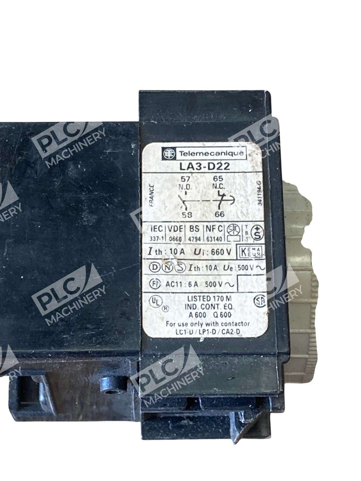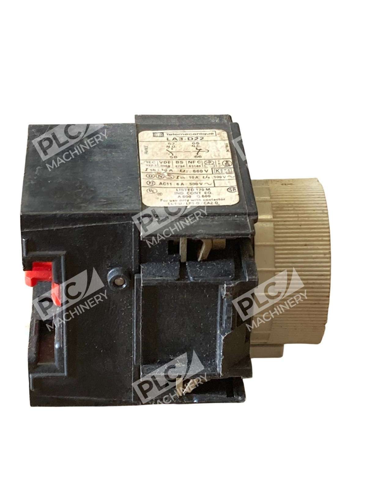 The Telemecanique LA3-D22 Off Delay Timer Relay is a reliable and durable electrical equipment designed for industrial use. This unit, with a model number LA3-D22, offers time delay functionality ranging from 0.1 to 30 seconds, making it versatile for various applications. With the trusted Telemecanique brand behind it, this timer relay ensures precise timing and efficient performance in a range of electrical systems. Perfect for businesses and industrial settings requiring accurate and dependable time delay controls.
