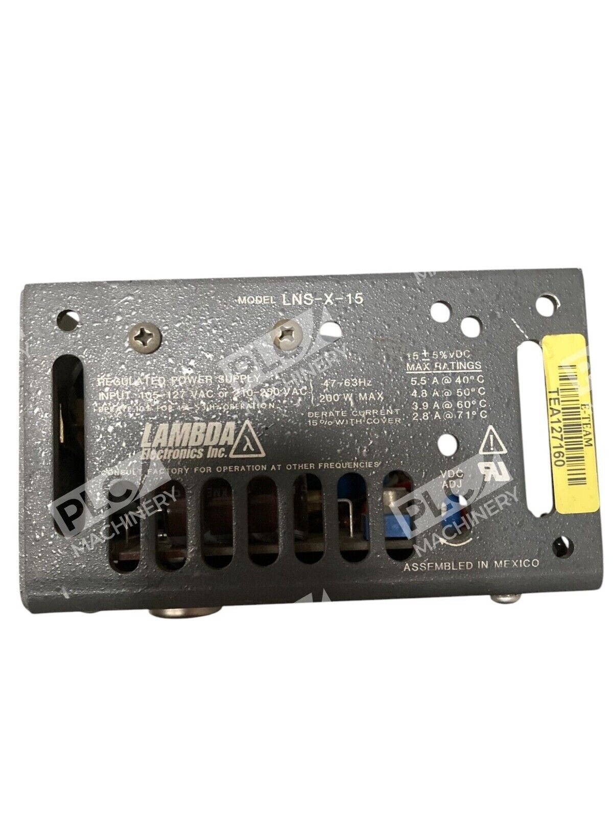 The Lambda 200W Regulated Power Supply LNS-X-15 is a power supply from the brand Lambda. It falls under the category of Switching Mode Power Supplies and is designed for use in industrial and electrical applications.