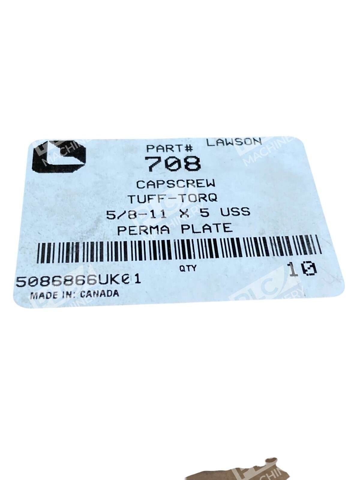The Lawson 5086866UK01 Tuff Torq 5/8-11 x 5 USS Perma Plate Capscrew 708 is a high-quality fastener made of alloy steel. With a hex head style and involving system of measurement in inches, this screw is designed for industrial use. The product comes in a box of 10, making it convenient for businesses and professionals needing a large quantity of durable fasteners. The manufacturer part number X604 ensures easy identification and specification for purchasing purposes.