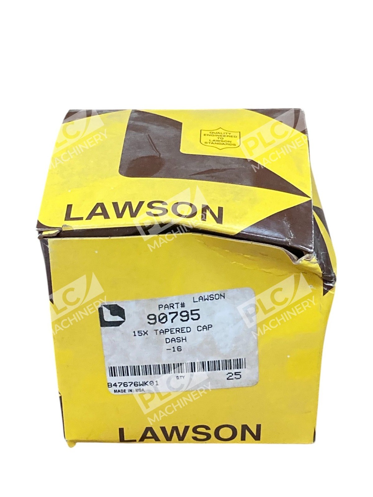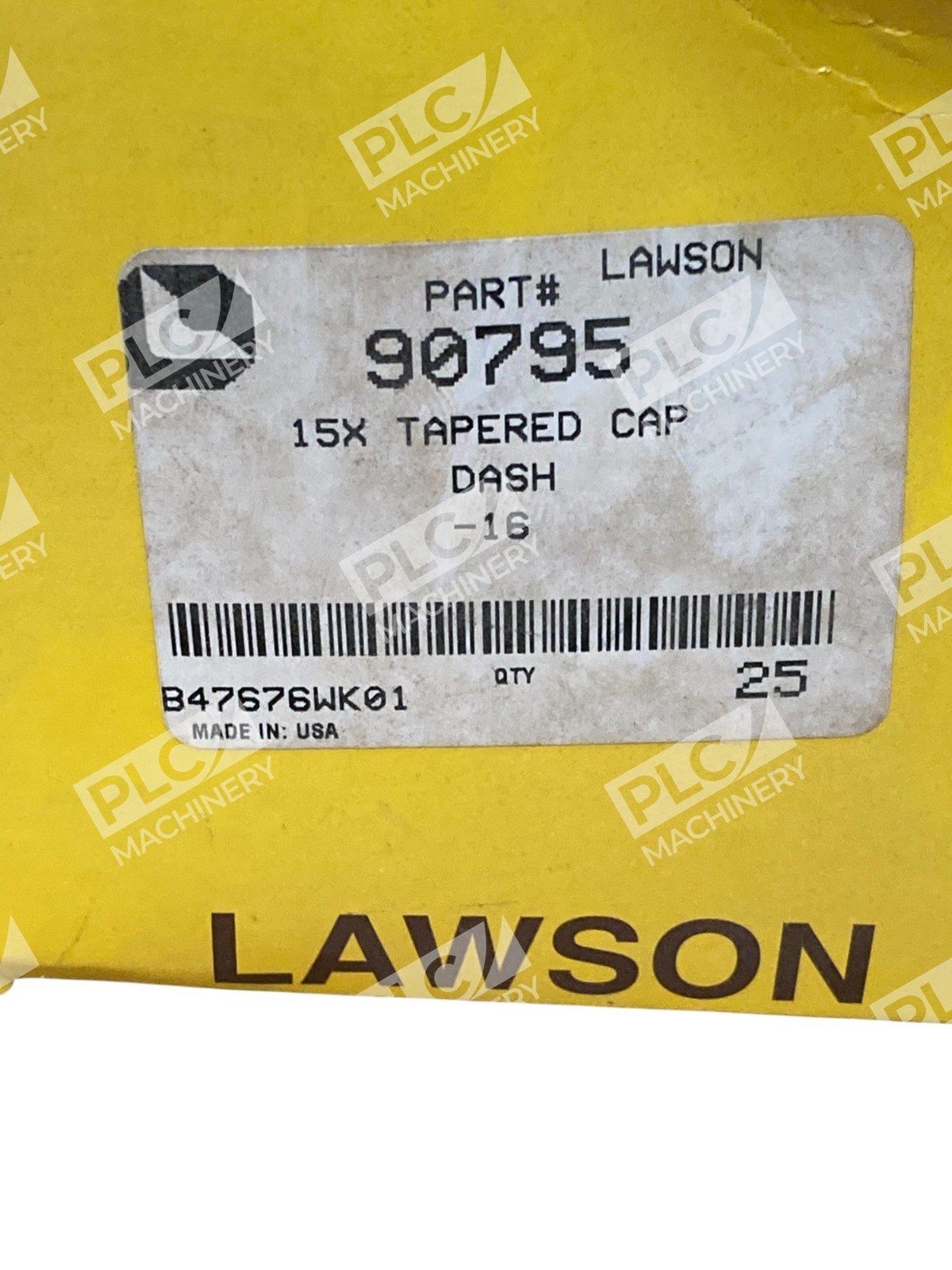 The Lawson B47676WK01 15X Tapered Cap Dash -16 90795 is a product made by PMI in the United States. This box of 25 units features a tapered cap design and is specifically labeled as model T1063. Each unit in the box contains 10 individually packaged units, making it a convenient and efficient solution for industrial or business use.