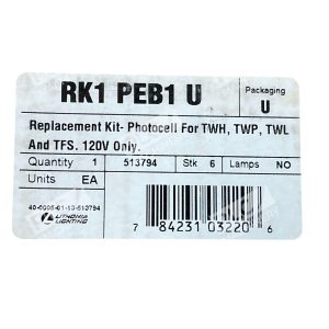The Lithonia Lighting Photocell Replacement Kit RK1 PEB1 U is designed specifically for use with TWH, TWP, TWL, and TFS 120V fixtures. This kit includes a photocell sensor that automatically adjusts the lighting level based on available daylight, ensuring optimal illumination and energy efficiency. Made by the trusted brand Lithonia, this replacement kit is a reliable and high-quality solution for maintaining and upgrading your facility lighting system.