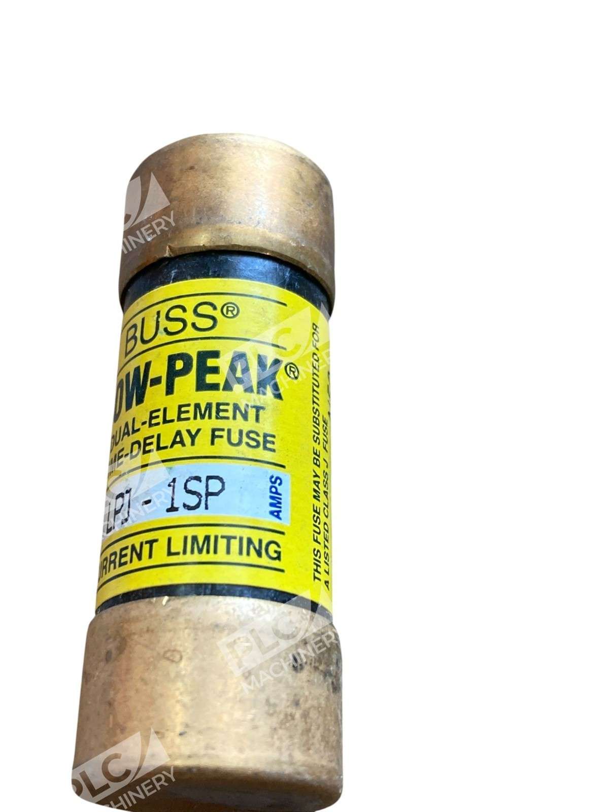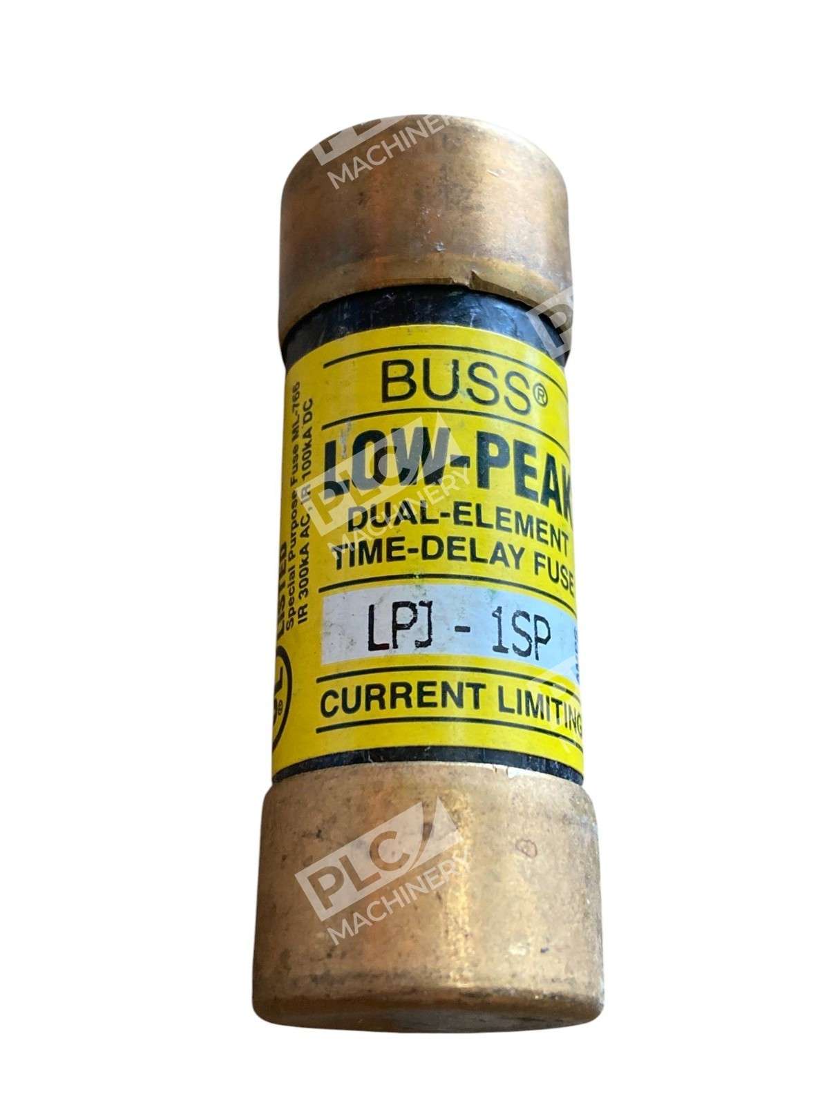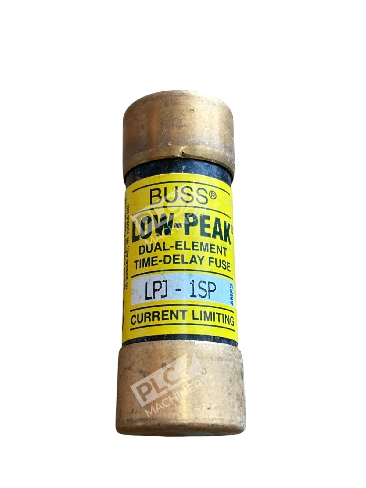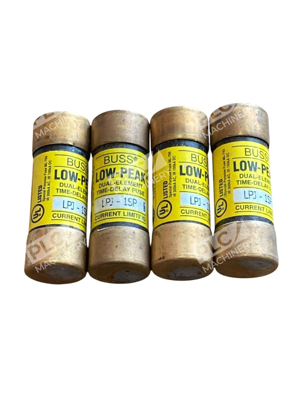 The Lot of 4 Bussmann LPJ-1SP Low-Peak Dual-Element, Current-Limiting, Time-Delay Fuses are high-quality electrical fuses suitable for interior use. These yellow fuses are cartridge-type with a copper body and have a tripping characteristic of Type D. They are designed for AC current and operate with an on/off method. Perfect for business and industrial settings, these fuses offer reliable protection for electrical equipment and supplies.