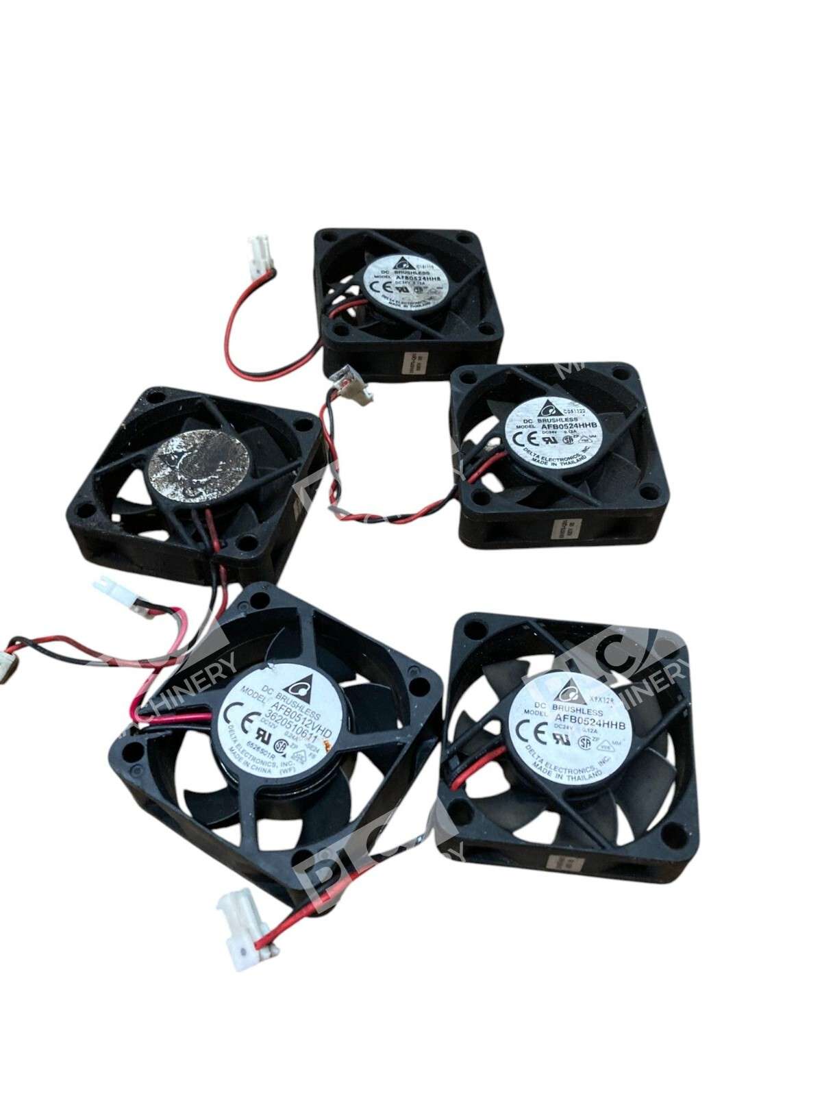 The product is a lot of 5 Delta AFB0524HHB 24V DC brushless cooling fans, measuring 50x50x15mm. These fans are designed for computer cooling systems and are known for their high efficiency and low noise operation. With a reputable brand like Delta, users can expect reliable performance and durability from these fans in maintaining optimal computer temperatures. Perfect for those looking to upgrade or replace existing cooling fans in their computer setup, these Delta fans provide a steady and effective cooling solution.