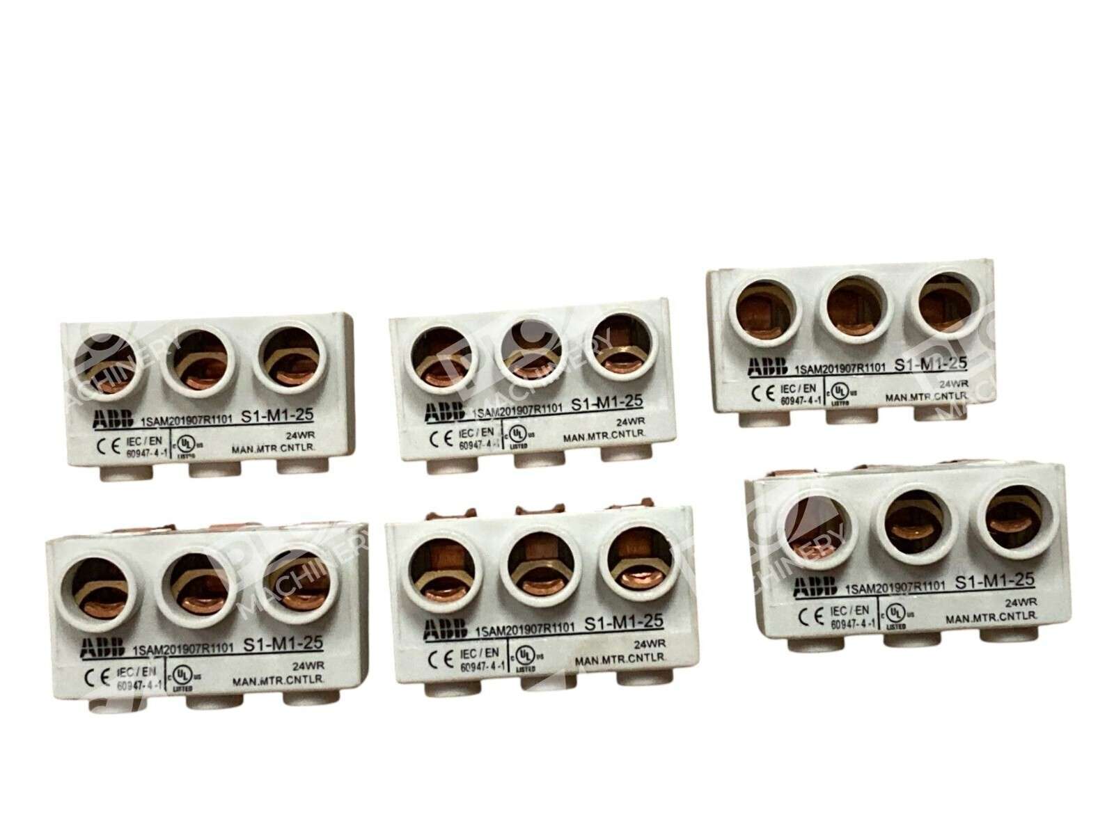 Lot of 6 ABB S1-M1-25 Power Infeed Blocks The ABB S1-M1-25 is a three-phase power infeed block designed to facilitate the connection of larger cable cross-sections up to 25 mm². This component is specifically engineered for compatibility with ABBs M