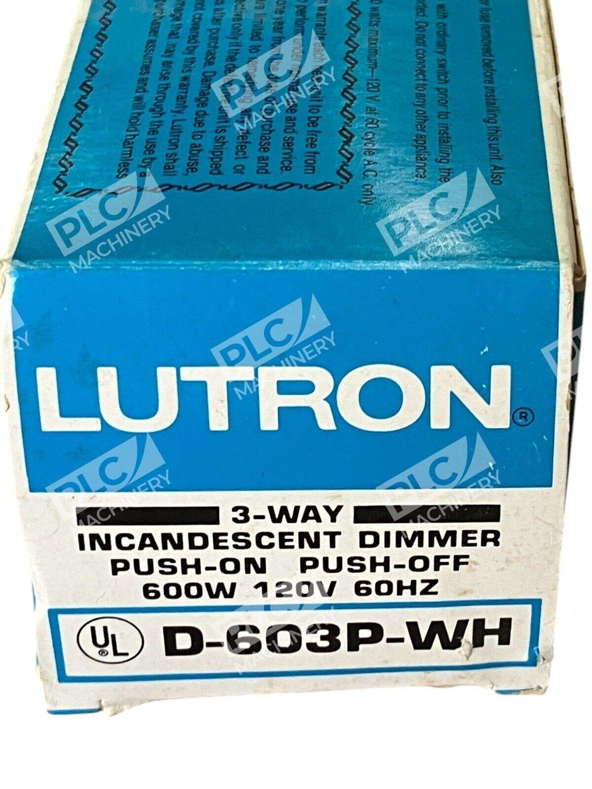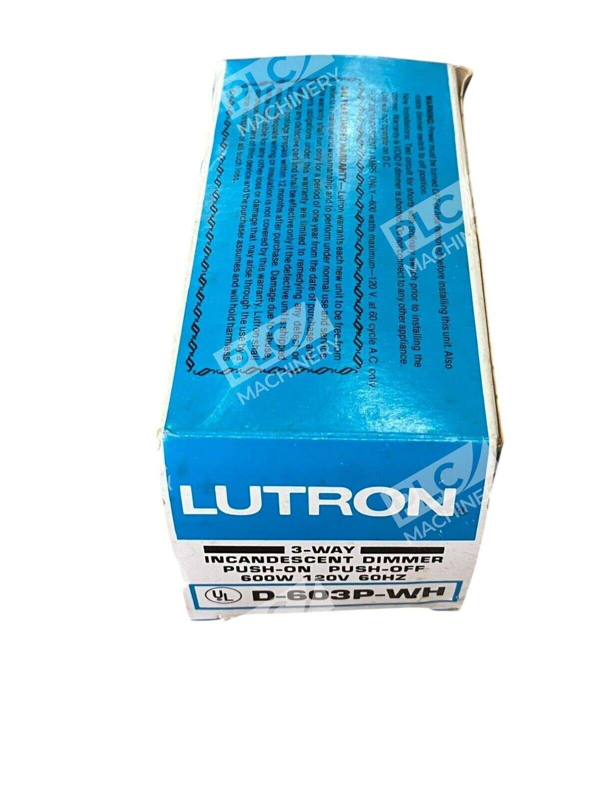 The product is a Lutron 600W 120V 60Hz White 3-Way Incandescent Dimmer with the model number D-603P-WH. It is designed to control the brightness of incandescent lights in a 3-way setup. The dimmer switch is in a white color, suitable for blending in with most decors, and is manufactured by the brand LUTRON, known for their quality electrical products.