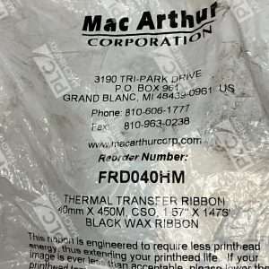 Mac Arthur 40mmX240m CSO 1.57"X1476' Black Wax Thermal Transfer Ribbon FRD040HM