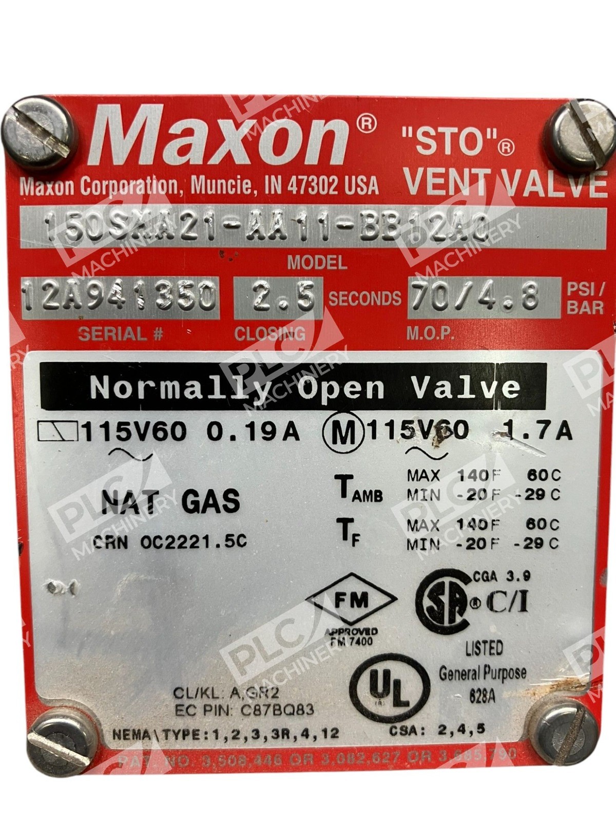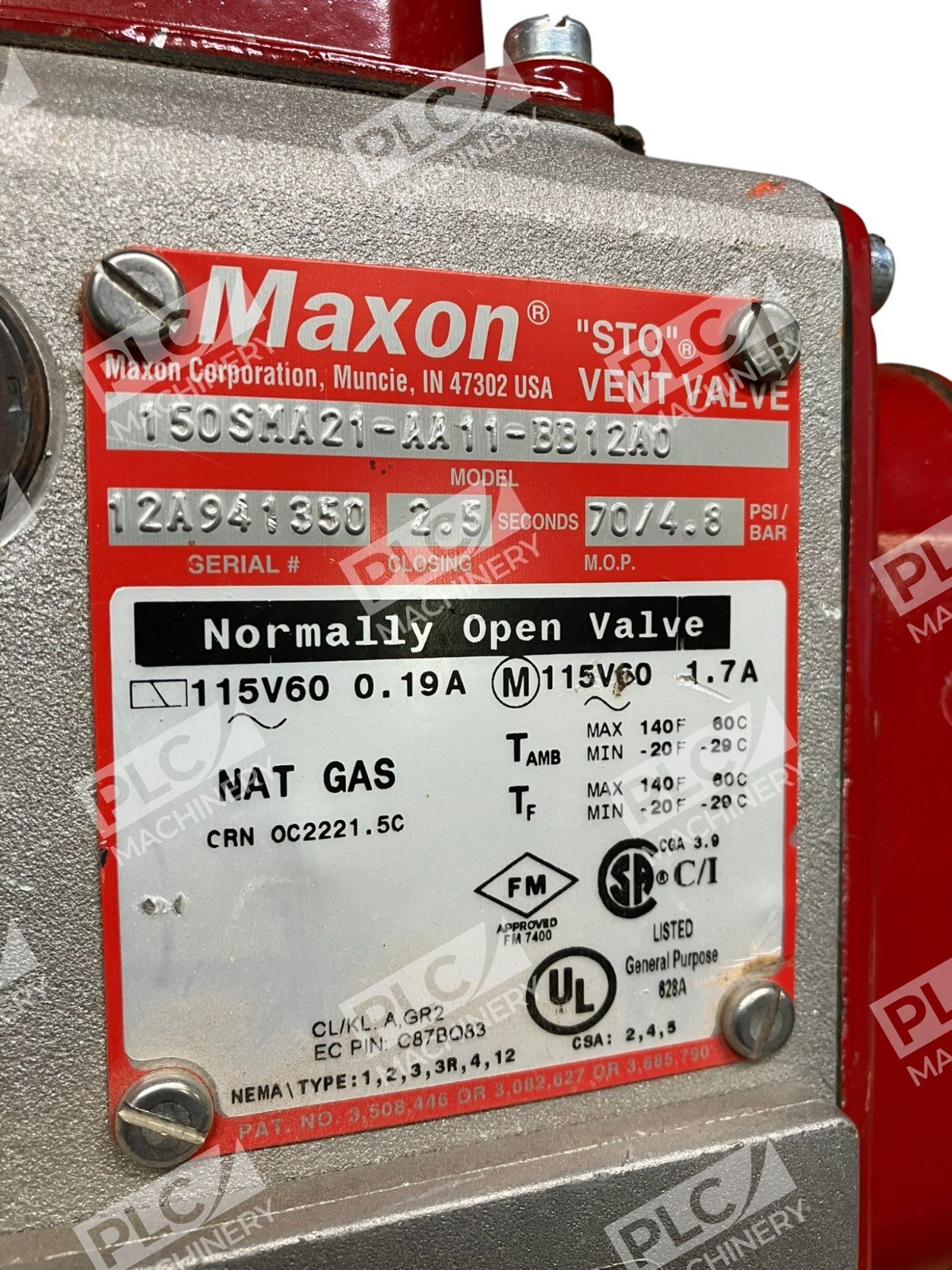 Maxon STO Vent Valve Normally Open Valve Natural Gas 150SMA21-AA11-BB12A0