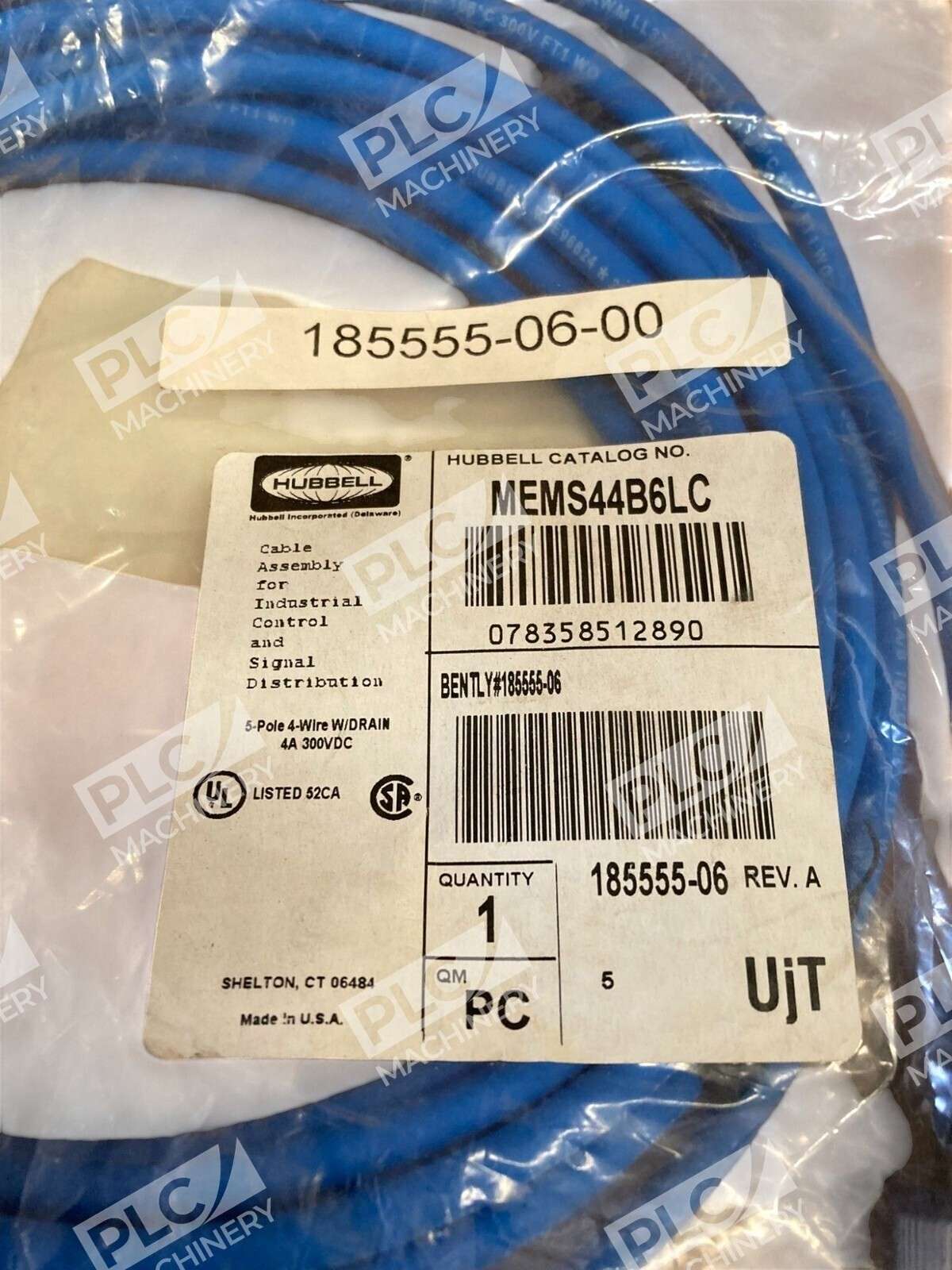 The Hubbell MEMS44B6LC 5Pole 4Wire W/ Drain 4A 300VDC Cable Assembly 185555-06 is a high-quality electrical cable designed for industrial use. With a maximum current rating of 4 amps and a voltage rating of 300 volts DC, this cable is suitable for va