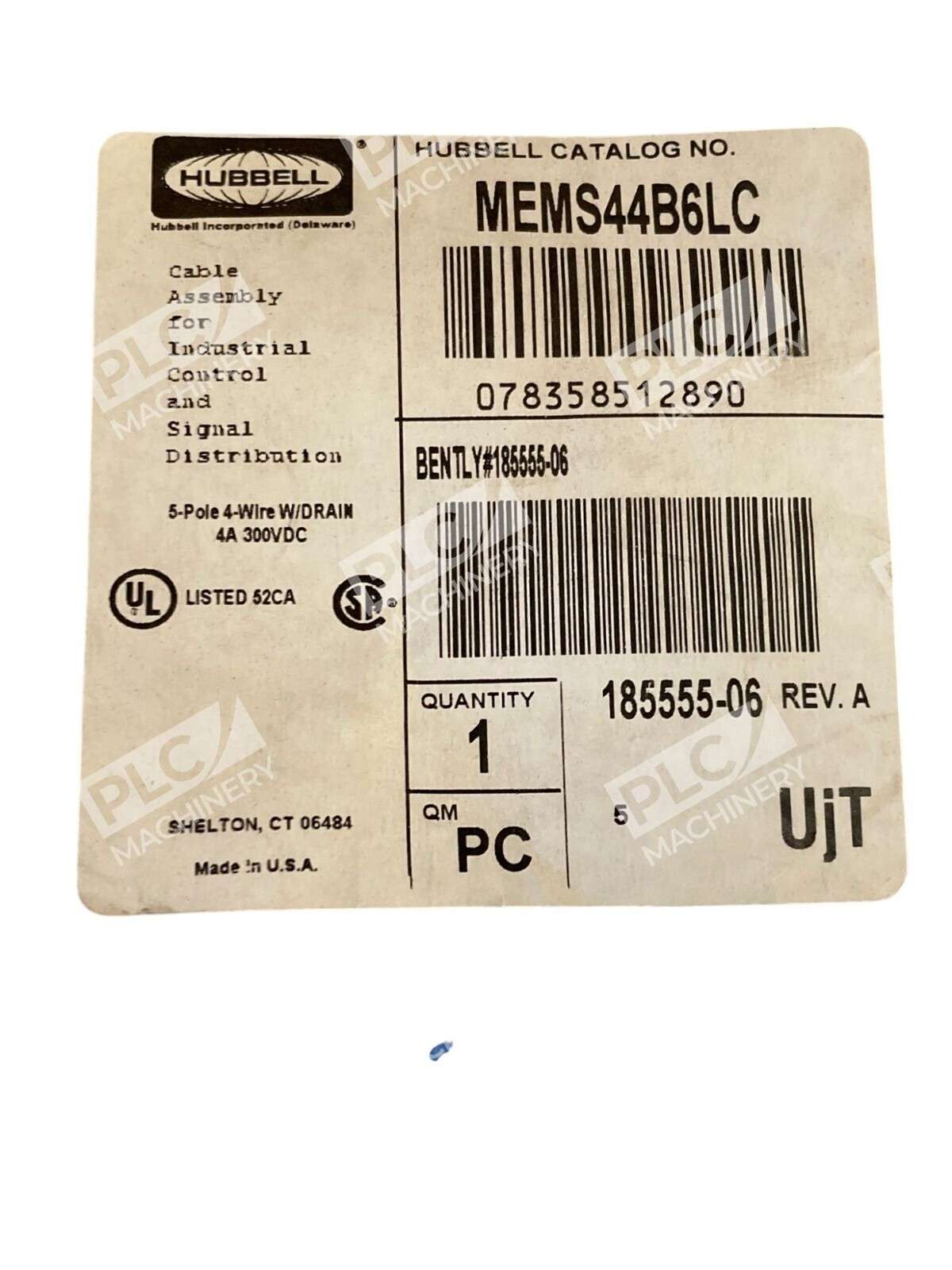 MEMS44B6LC – Hubbell – 5Pole 4Wire W/ Drain 4A 300VDC Cable Assembly 185555-06