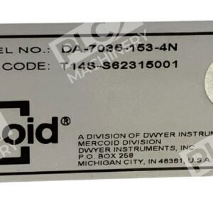 The Mercoid Dwyer Temperature Control DA-7035-153-4N is a high-precision temperature switch designed for accurate monitoring and control in various industrial applications. Utilizing a Bourdon tube mechanism, it ensures high sensitivity and durability, making it suitable for demanding environments.