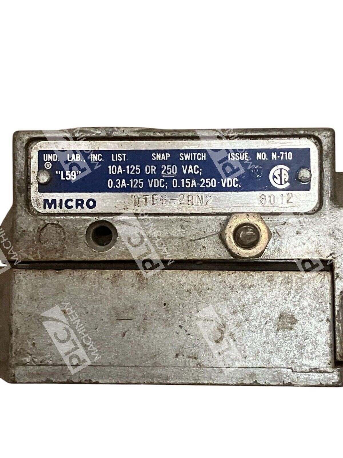 The Micro Switch N-710 L59 Snap Switch 8012 DTE6-2RN2 is a product from the brand Micro Switch. It is a snap switch designed for specific applications, featuring model numbers N-710 L59 and 8012 DTE6-2RN2.