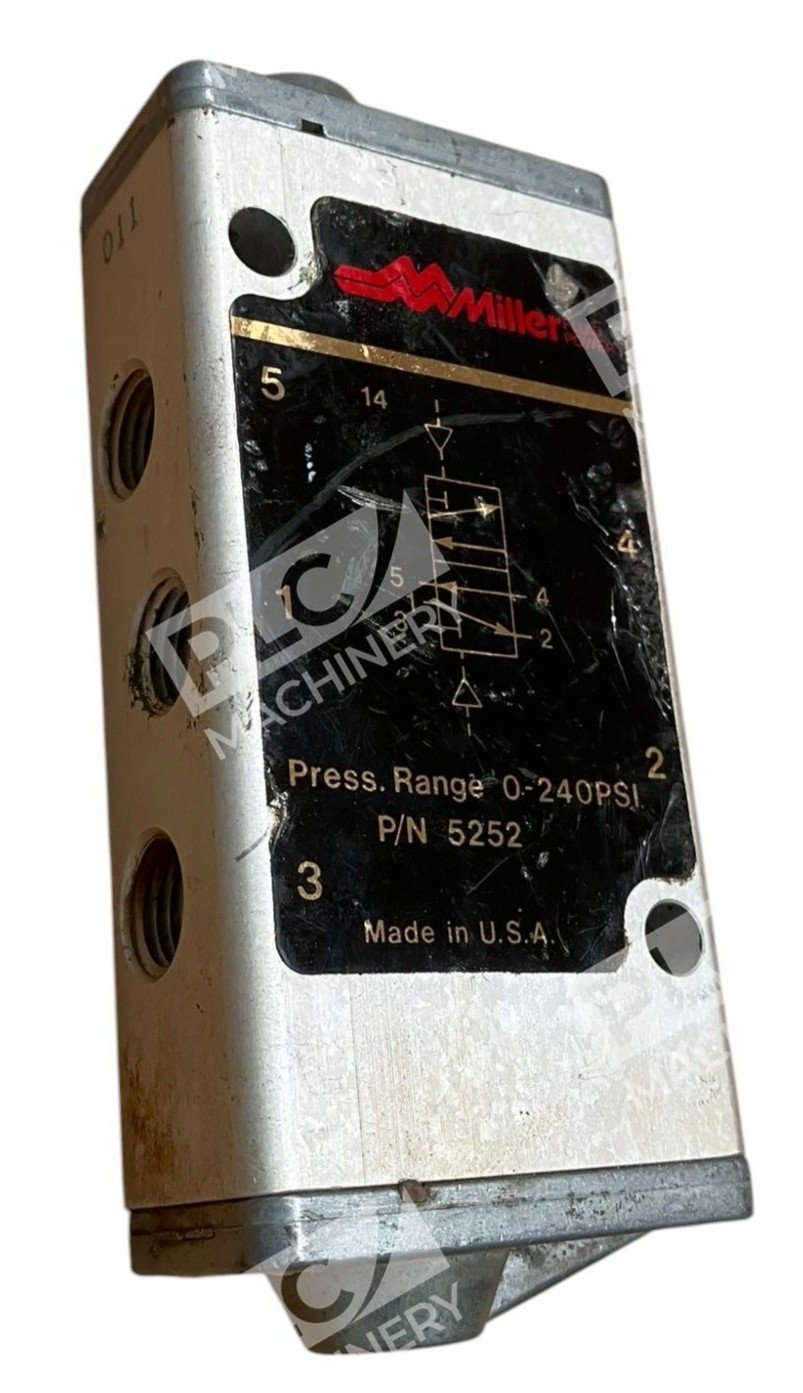 Ideal for use in pneumatic and hydraulic systems, the Miller 5252 valve provides reliable performance in controlling fluid flow, making it a valuable component in manufacturing, automation, and process control industries.