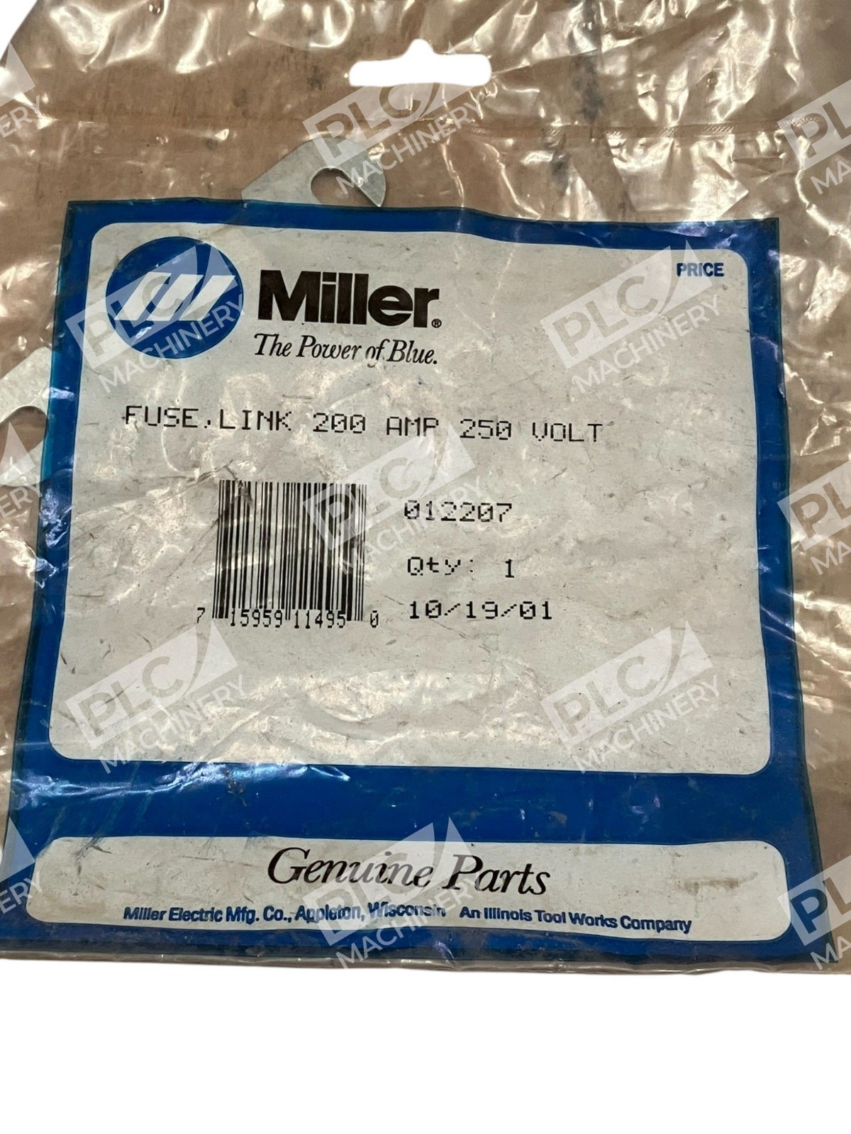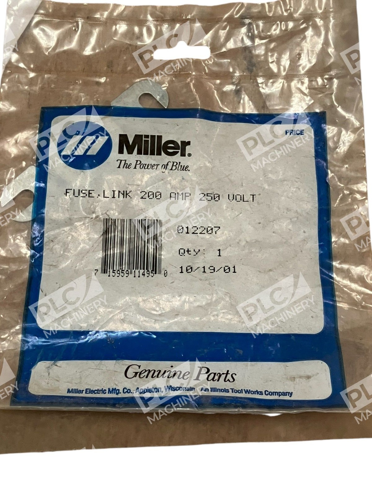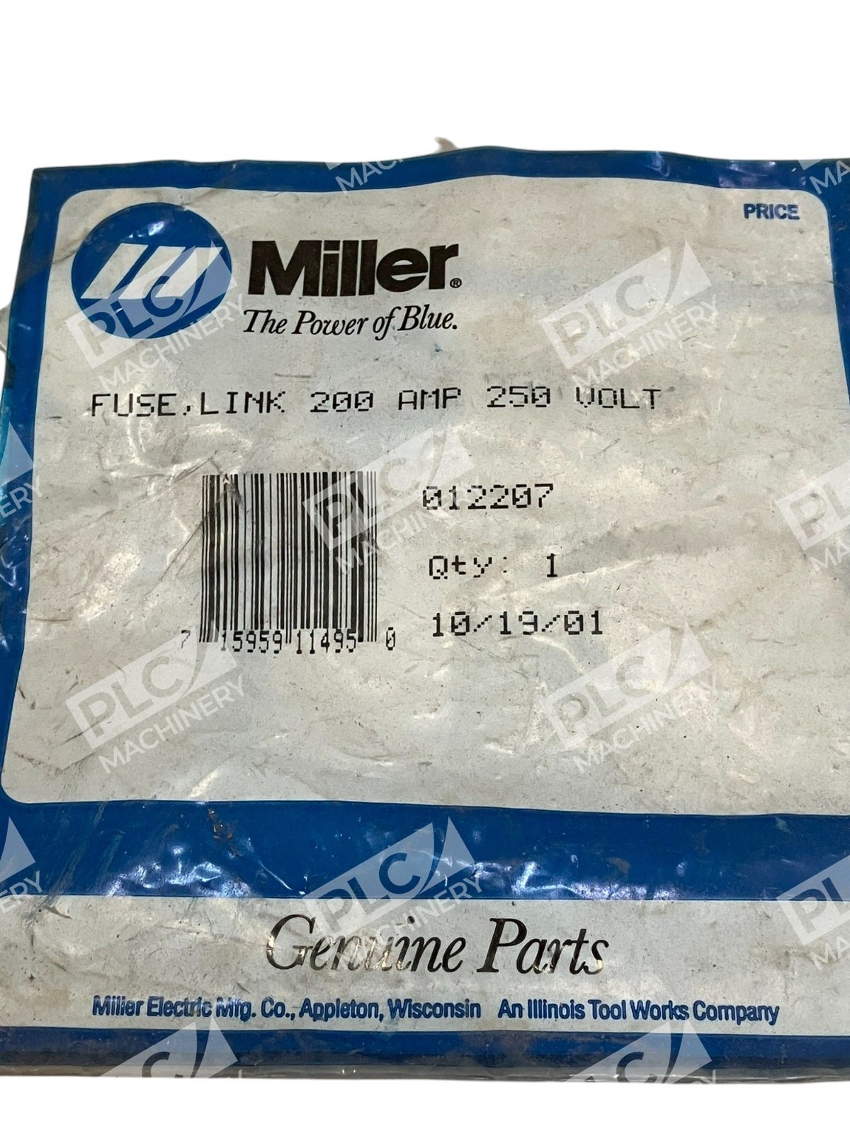 The Miller The Power Of Blue 200A 250V Fuse Link 012207 is a high-quality electrical component designed for industrial use. Manufactured by Miller Parts, this fuse link is specifically modeled as 012207, ensuring a perfect fit and reliable performance. With the ability to handle up to 200A and 250V of electrical power, this product is essential for maintaining the safety and functionality of electrical systems in various industrial settings.