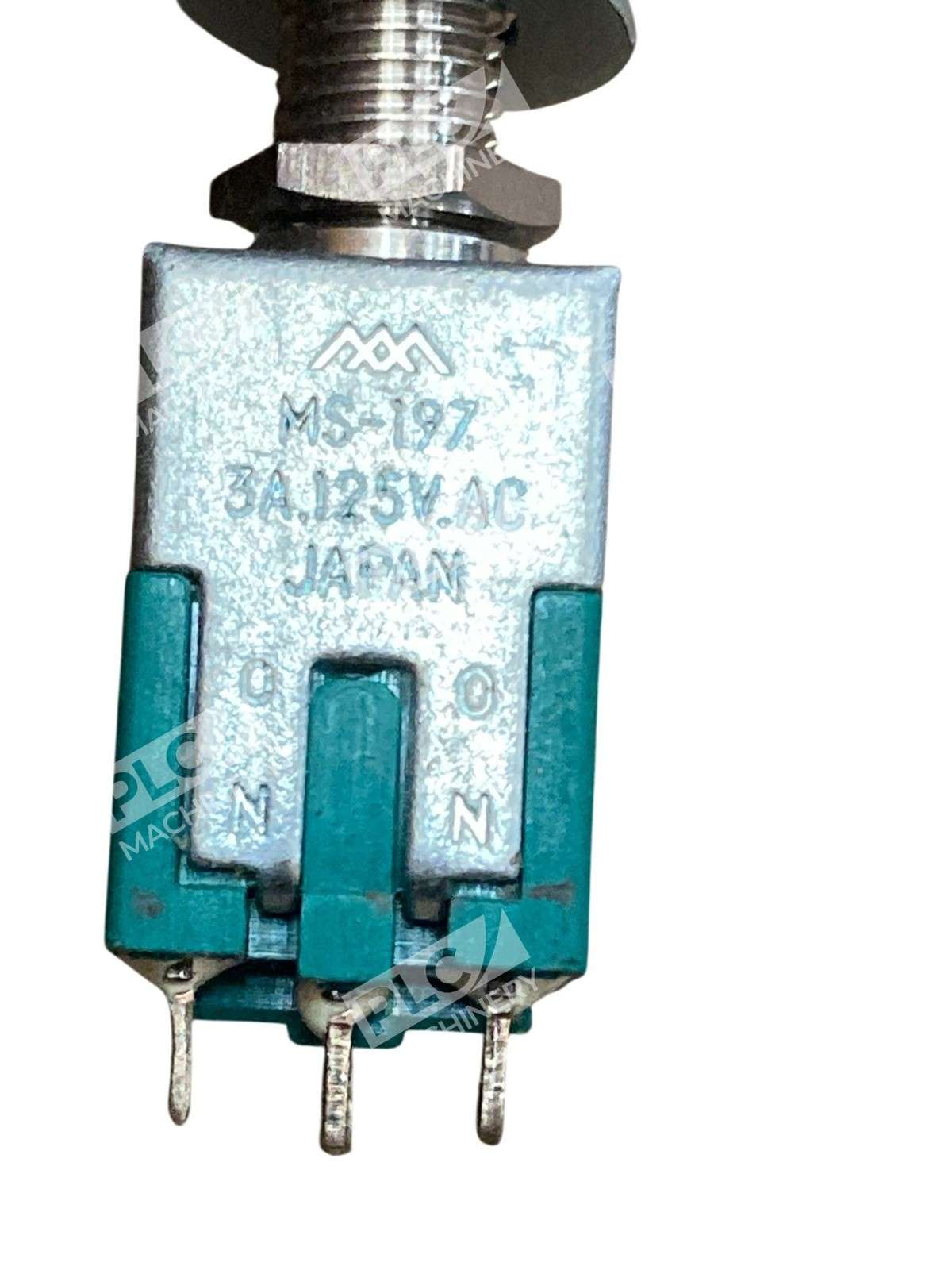 The Miyama Electric MS-197 DPDT Push Button Switch is a vintage unit with an on/off operation method, designed for electrical equipment and supplies. With a brand known for quality products, this push button switch allows for easy control of up to 3A of current at 125VAC. Perfect for various industrial and business applications, this switch is reliable and durable, providing a simple yet effective solution for managing electrical connections.