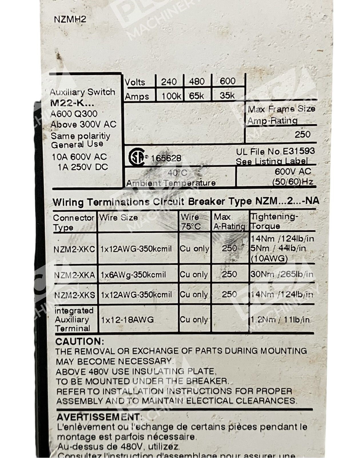 This Moeller Eaton circuit breaker is a reliable and high-quality option for your electrical needs. With 3 poles and an amperage rating of 20, it can handle a variety of electrical loads. The model number is NZMH2-AF20-NA and it is made by Eaton Moeller in Germany.
