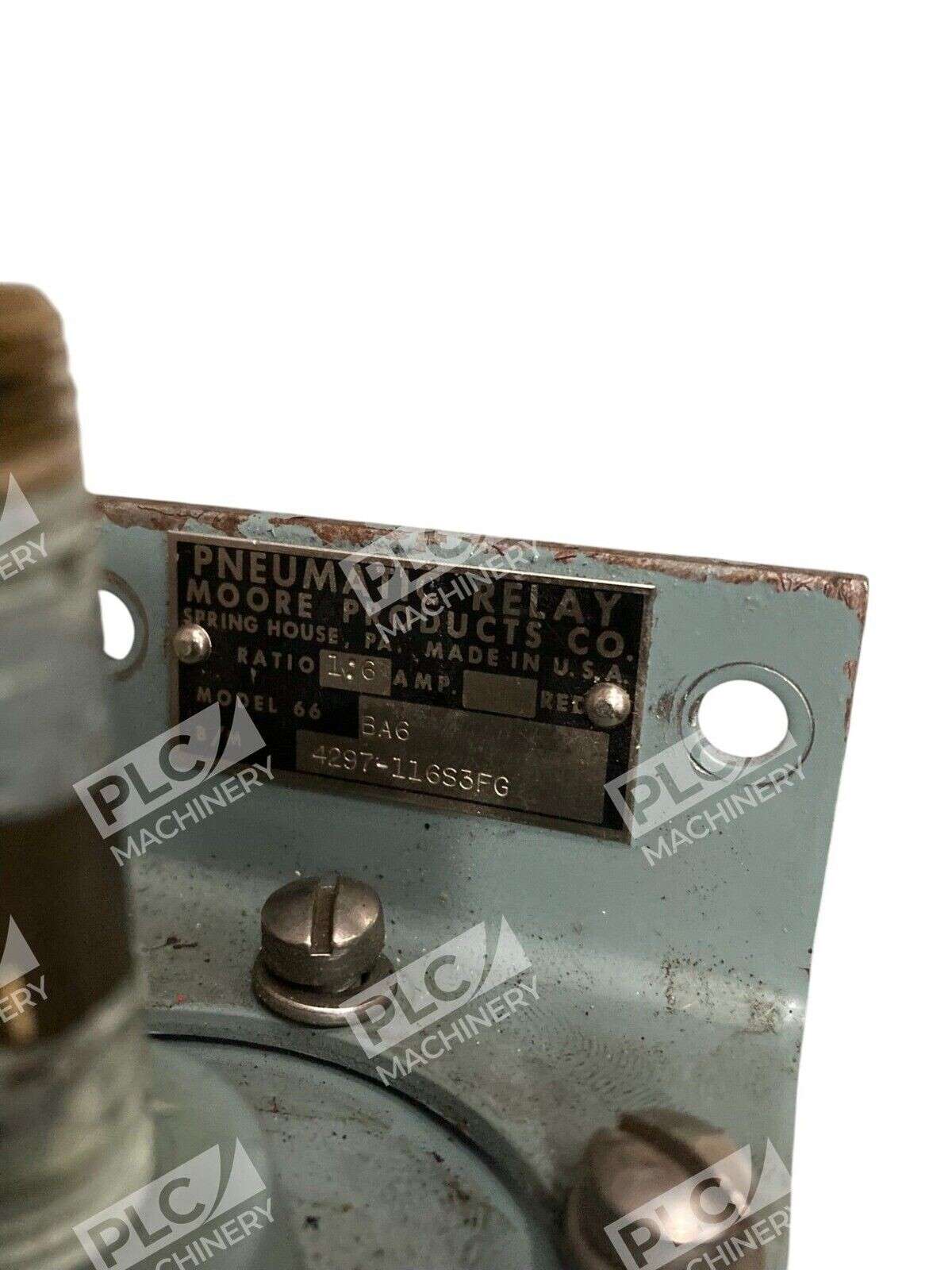 The product is a Moore Products pneumatic relay with a ratio of 1:6 and model number 4297-116S3FG. It includes a mount and is suitable for industrial use. Brand is General Electric. Non-domestic product status is known. It is not a custom bundle or a modified item. The product is a reliable and efficient component for industrial applications.